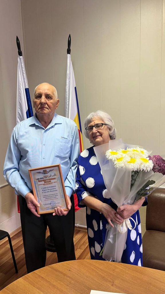 В торжественной обстановке сотрудники ЗАГСа поздравили с золотым свадебным юбилеем Юрия Петровича и Татьяну Ивановну Самодуровых.