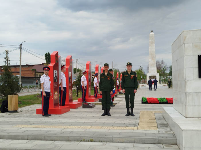 Памятное событие прошло на обновленной аллее, ведущей к «Вечному огню». В рамках работ по благоустройству, проведенных к 80-летию Победы, здесь установлены мемориальные стелы в честь 17 героев из Миллеровского района, а также создана новая флаговая композиция, что добавило торжественности этому значимому месту.