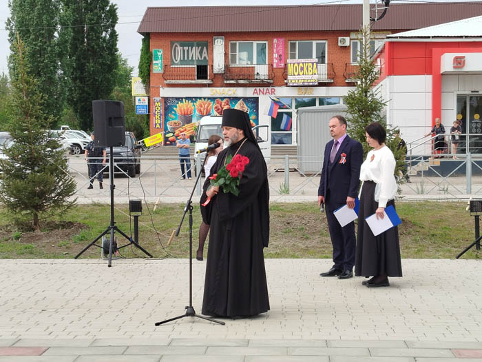 К землякам и гостям города обратился отец Димитрий. Он отметил, что подвиг наших предков, погибших, защищая свое Отечество, — это драгоценная цена жизни нынешних поколений.