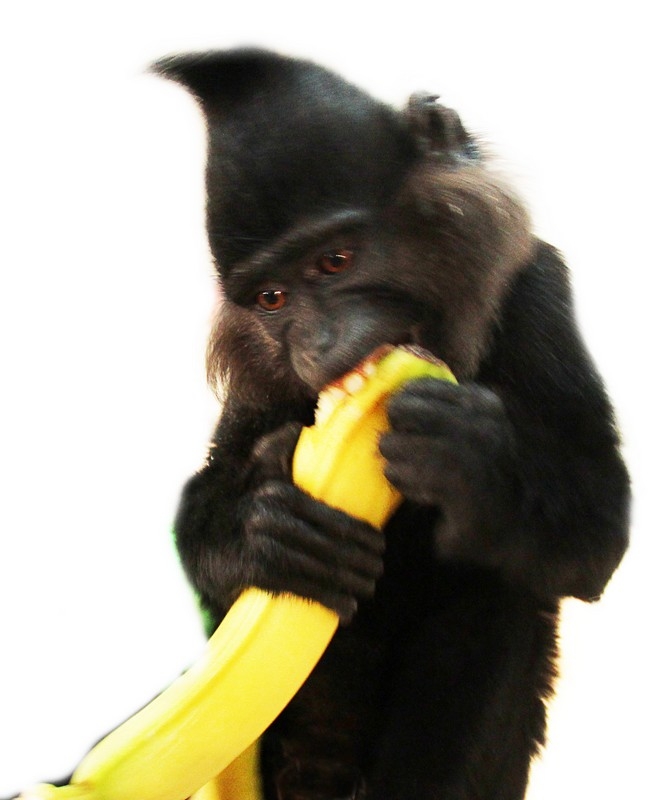 Спят обезьяны как люди. Если днем нет посетителей -отдыхают. Но когда много людей, позируют, некоторые выпрашивают корм, издавая какие-то звуки. Мы угостили бананом Сэма, он быстро его очистил. Стал есть. Банан, видимо, не помещался в желудок. Тогда остатки он спрятал за щеки, как хомяк.