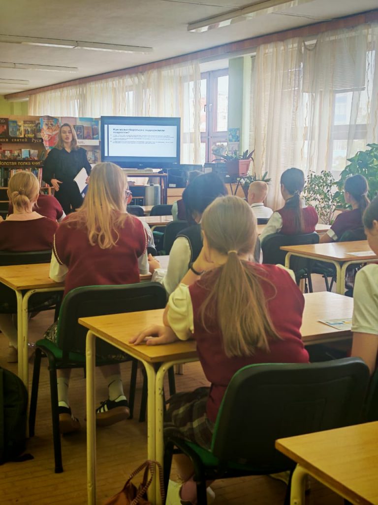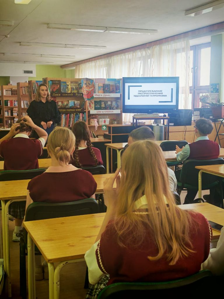 В лицее № 7 специалист ДК Миллеровского района Е.И.Гуреева провела беседу, посвящённую Дню солидарности в борьбе с терроризмом. Мероприятие под названием «Будь бдительным!» было направлено на повышение осведомлённости учащихся о мерах безопасности и действиях в экстренных ситуациях.