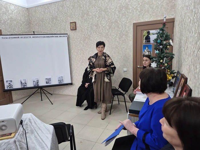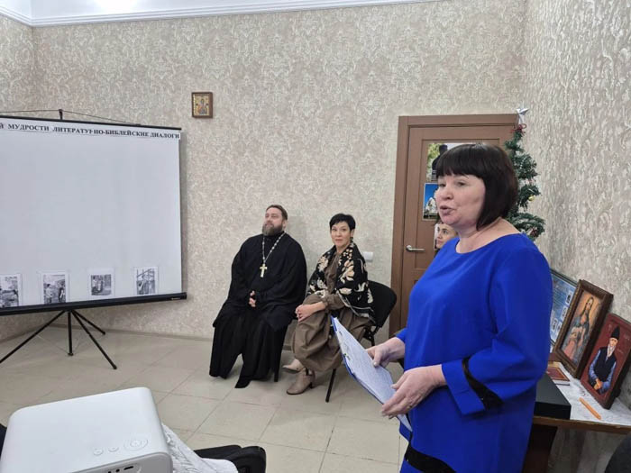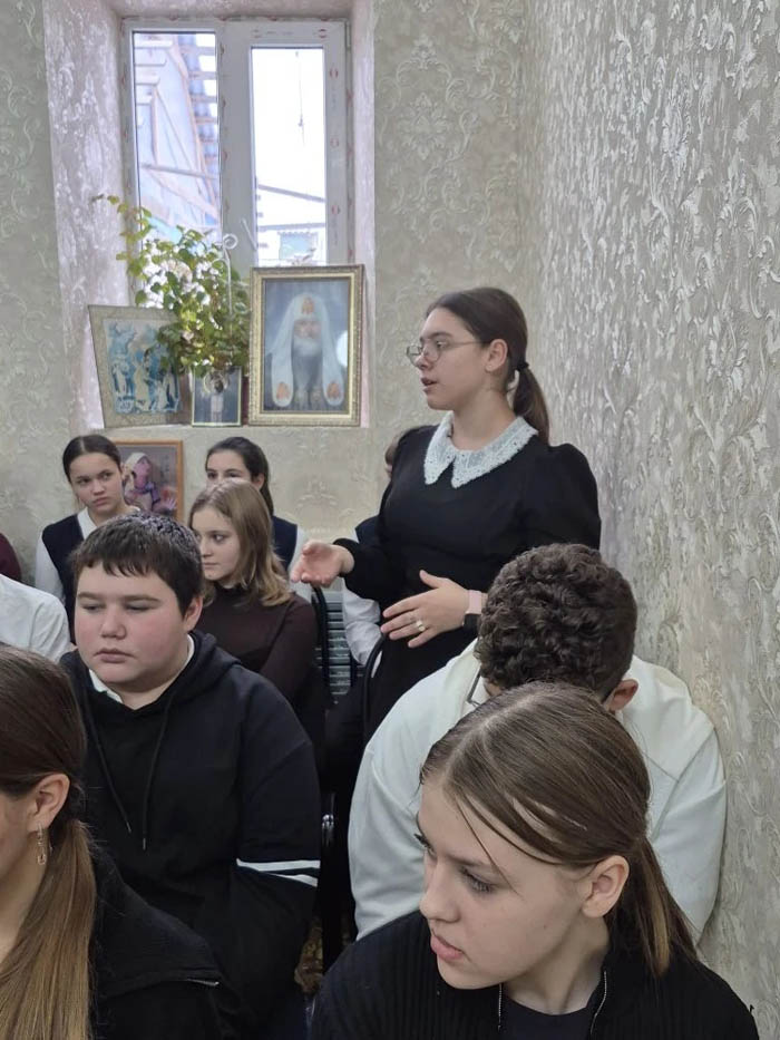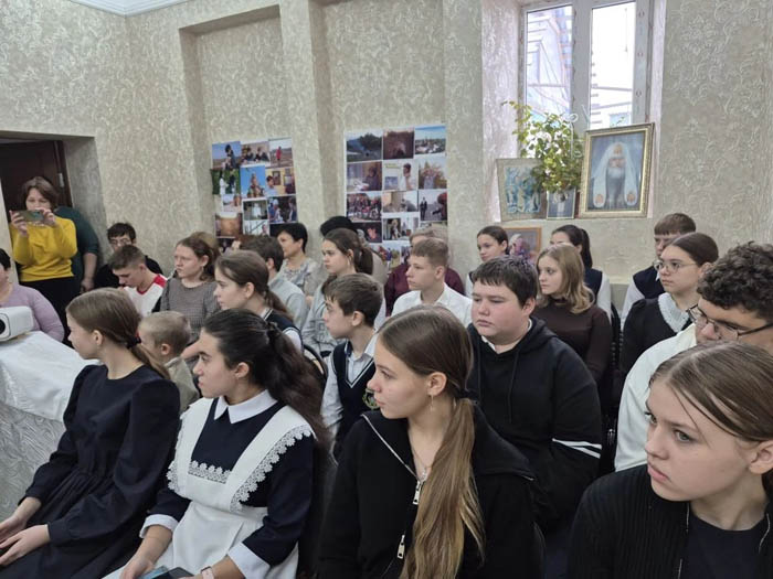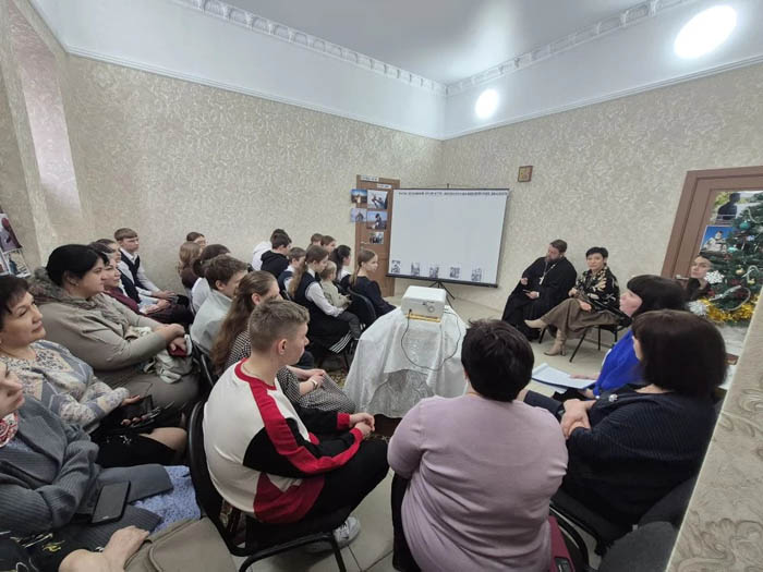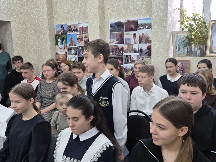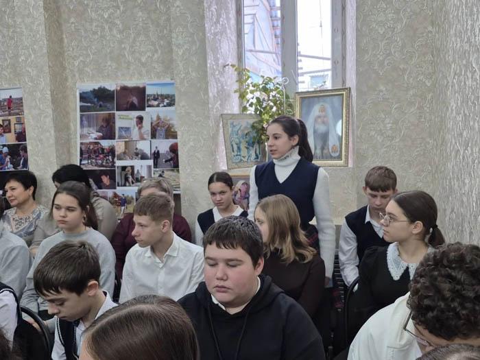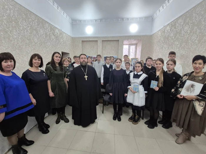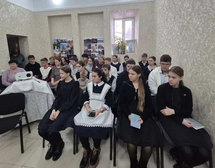 В ходе мероприятия «Часы духовной мудрости», состоявшегося в воскресной школе Свято-Андреевского прихода г. Миллерово, сельские и городские школьники 8-11 классов под наставничеством священнослужителя — настоятеля храма Апостола Андрея Первозванного иерея Симеона Есина и педагогов открыли важные духовные смыслы киноповести «Стопы моя направи…». Ее автор — директор Первомайской школы, учитель русского языка и литературы Елена Алексеевна Мишустина.