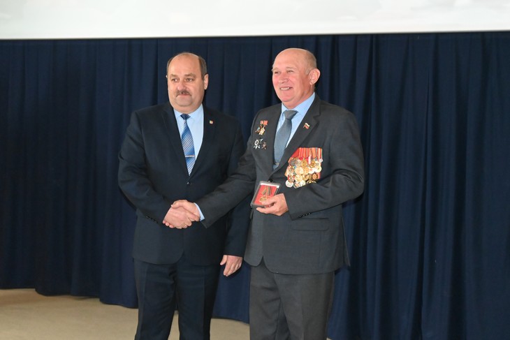 Он также вручил медаль «40 лет ликвидации аварии на Чернобыльской АЭС» присутствующим в зале участникам трагических событий.