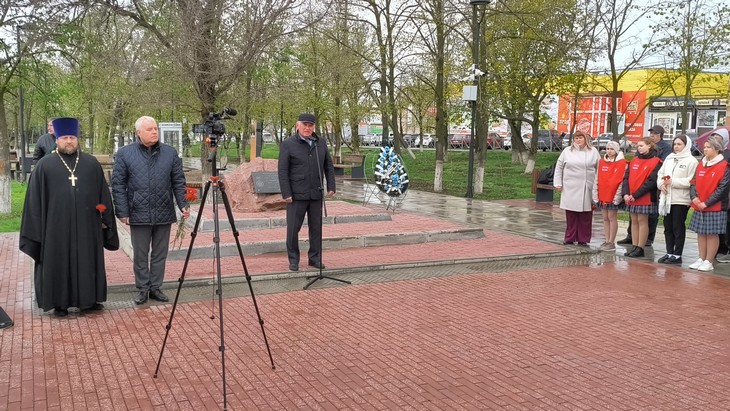 Минутой молчания почтили присутствующие память погибших при ликвидации аварии на Чернобыльской АЭС, а затем возложили цветы и венки к памятному камню.