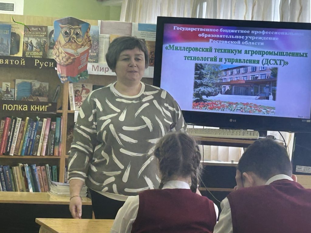 В рамках Единого дня профориентации для учеников 9-х классов лицея № 7 провели встречу с представителями Центра занятости населения, дистанции пути и Донского сельскохозяйственного техникума (ДСХТ).