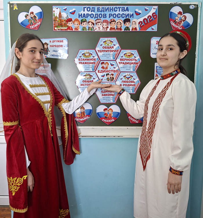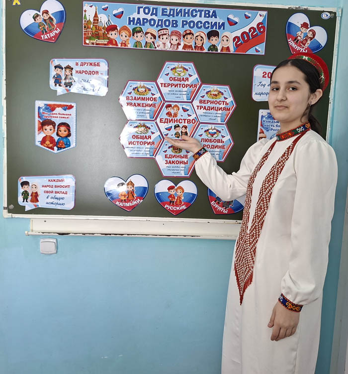 В рамках Года единства народов России классный руководитель 7-б класса школы № 2 Анжелика Стребулева вместе со своими учениками организовала и провела классный час «В дружбе народов — единство России».