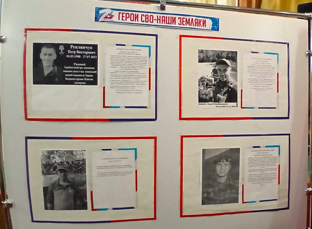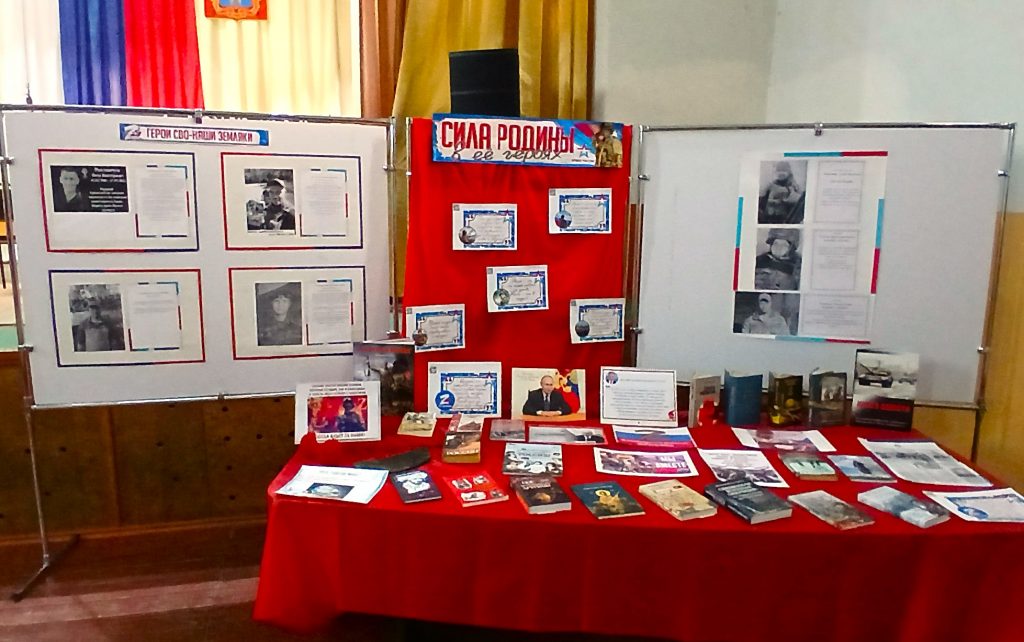 Специально к встрече подготовили стенды о героях-земляках, где представлена информация об их биографиях и подвигах. Работала книжная выставка «Сила Родины, в её героях».