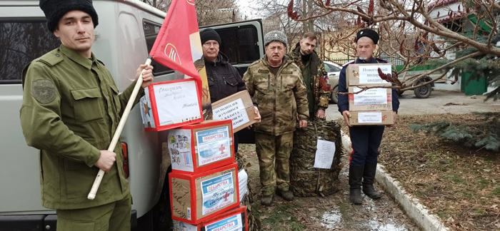 военнослужащих, собрали казаки Миллеровского юрта. Особенно постарались активисты станицы Миллеровской, Первомайского, Титовского, Дёгтевского и других хуторских казачьих обществ. Маскировочные сети, питьевая вода, средства гигиены, комплекты белья – груз традиционный. Но перед Новым годом упаковки со сладостями, фруктами, соками, домашней консервацией — особенно кстати.