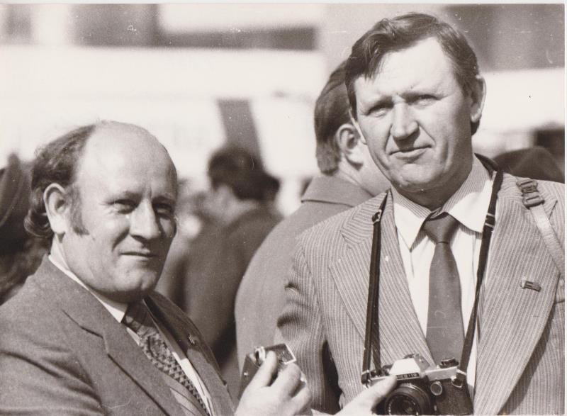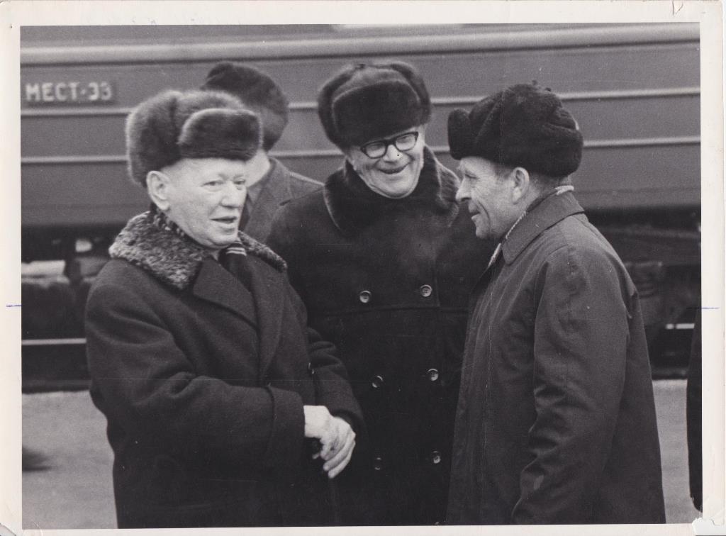 и водитель Шолохова на железнодорожном вокзале в Миллерово. 1974 год, декабрь. Снимок фотографа редакции А. С. Егорова.