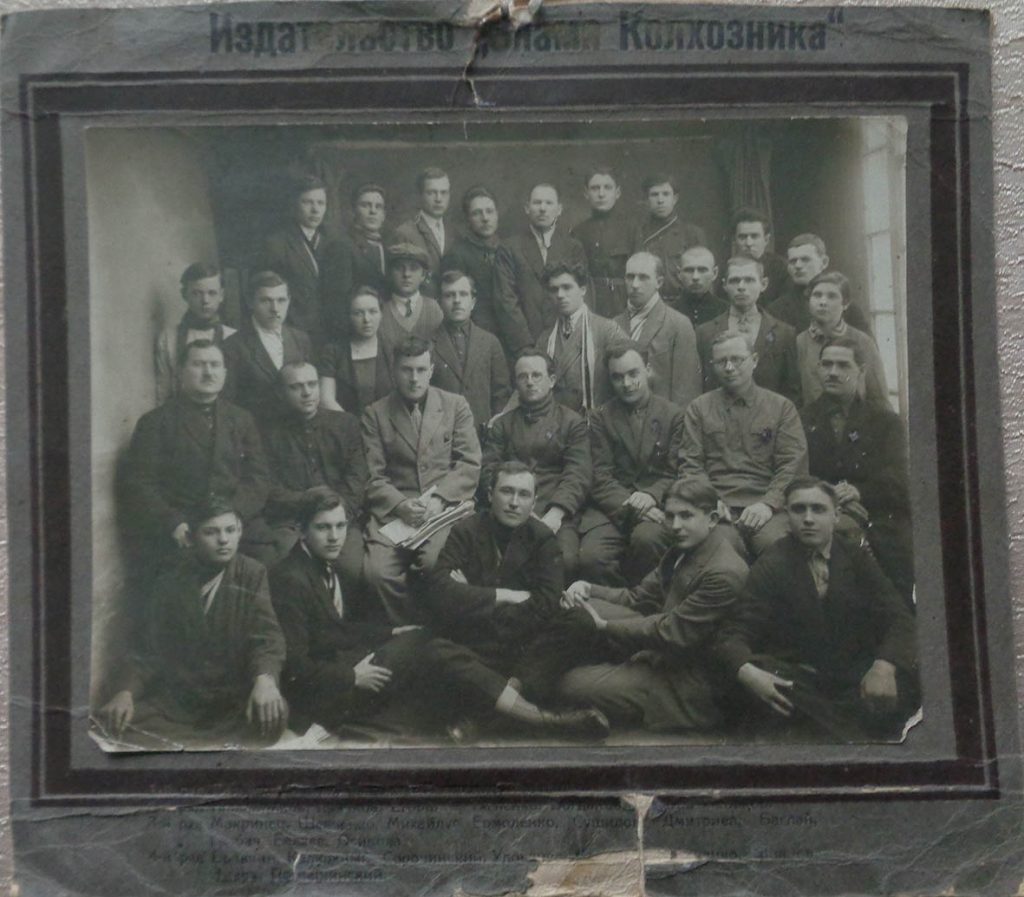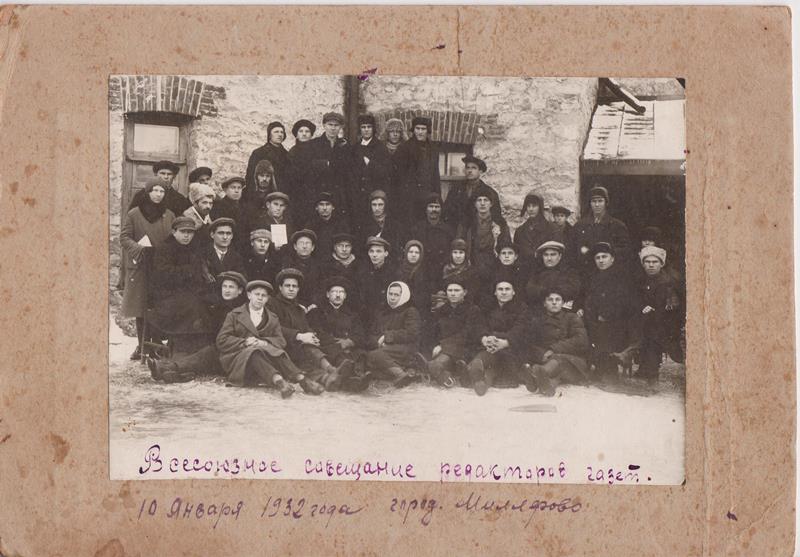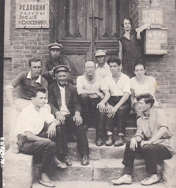 Коллектив газеты "Знамя колхозника" у входа в редакцию, 1930 год.
