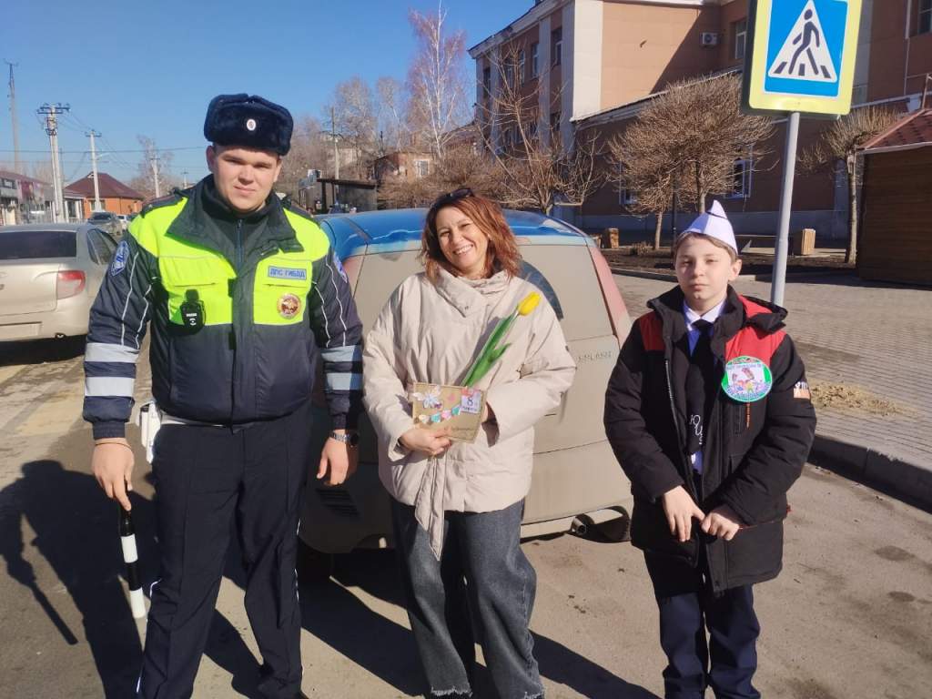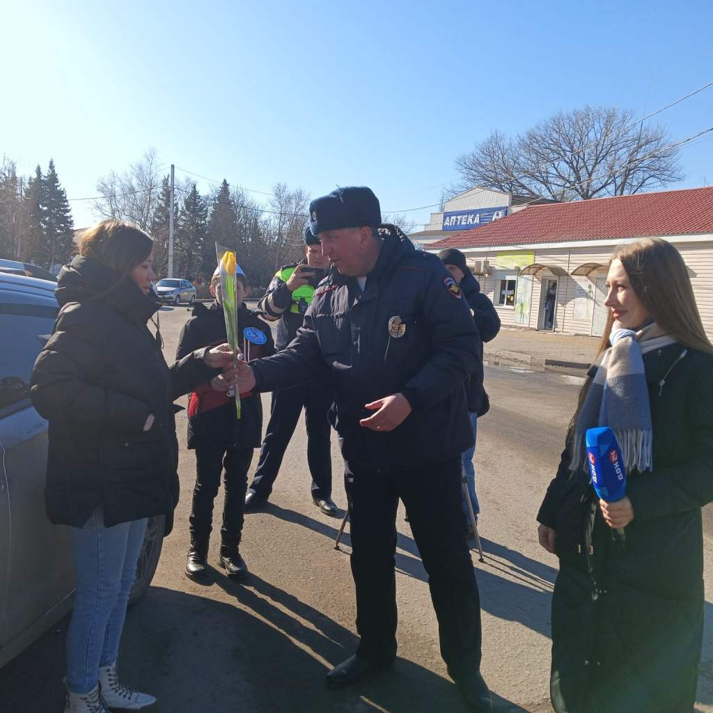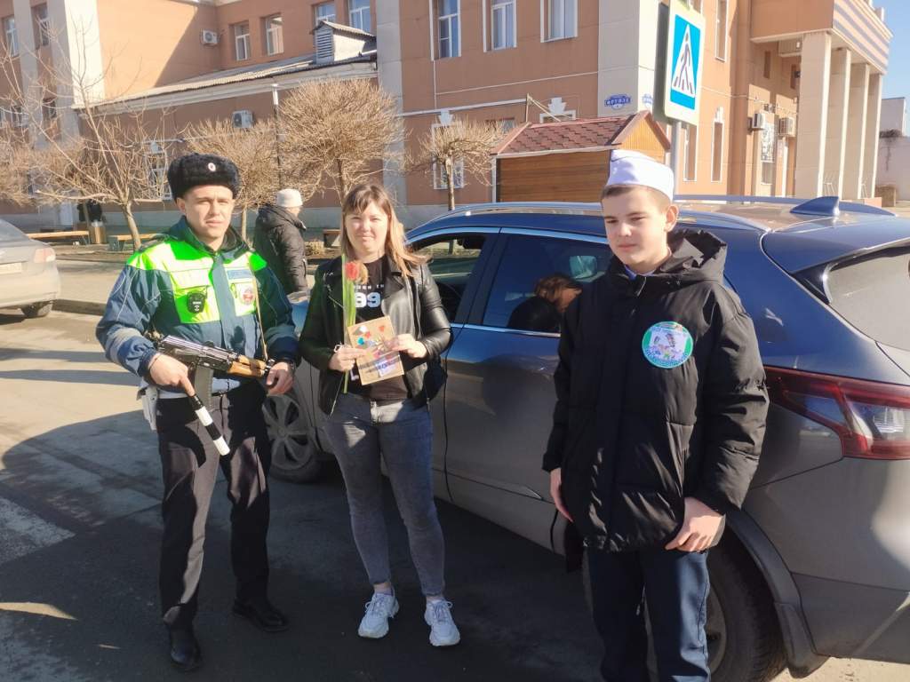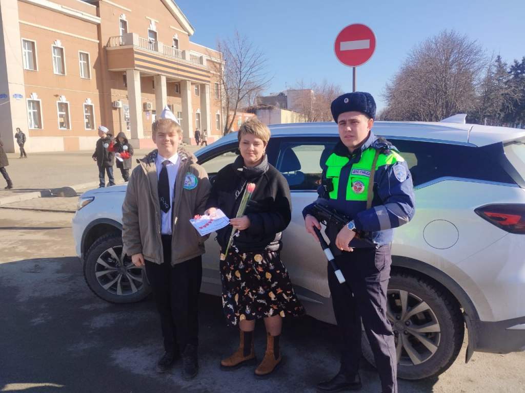 Инспекторы дорожно-патрульной службы останавливали автомобили, за рулем которых были женщины, дарили цветы и открытки. Женщинам также напоминали о важности соблюдения Правил дорожного движения и необходимости быть предельно внимательными, осторожными на дорогах. Вместе с полицейскими в акции приняли участие ребята из отряда ЮИД гимназии № 1.