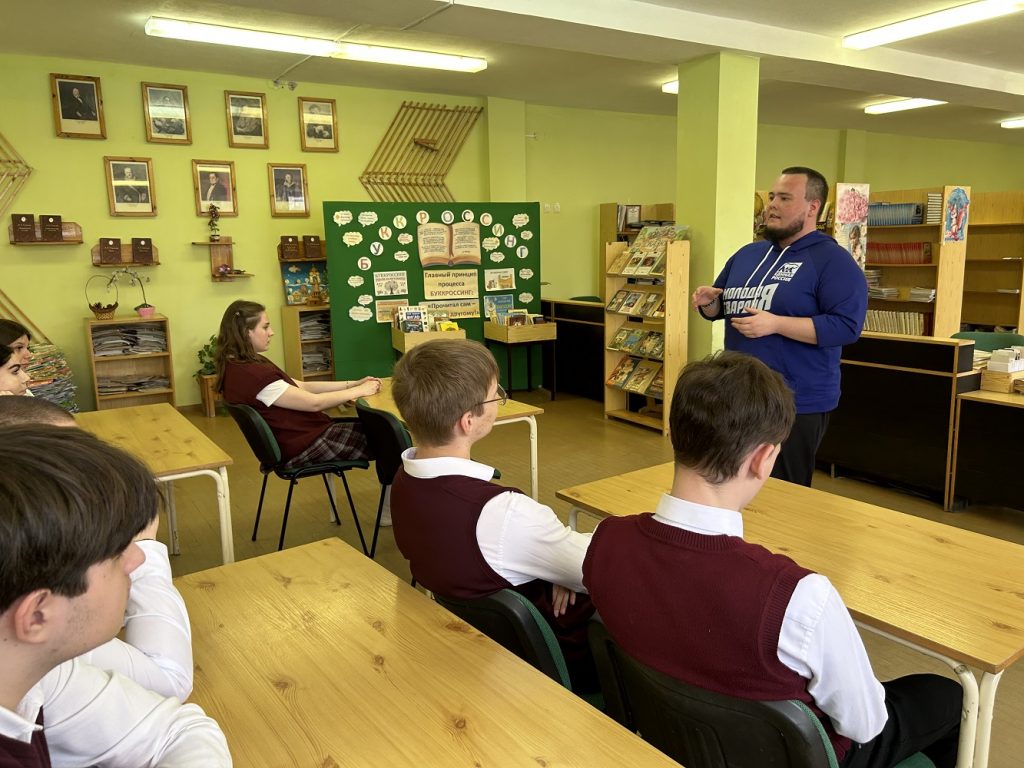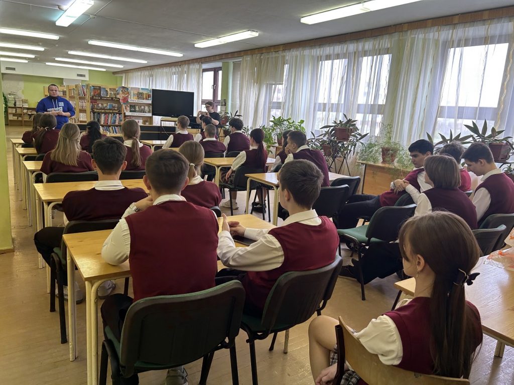 Гость рассказал старшеклассникам об учёбе в колледже при Донском государственном техническом университете и самом вузе, поделился советами по подготовке к поступлению. Он отметил, как занятия общественной деятельностью помогают выбрать дело по душе, и поделился своим опытом работы в «Молодой Гвардии» и в партии «Единая Россия».