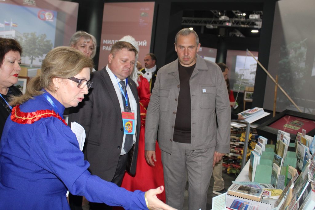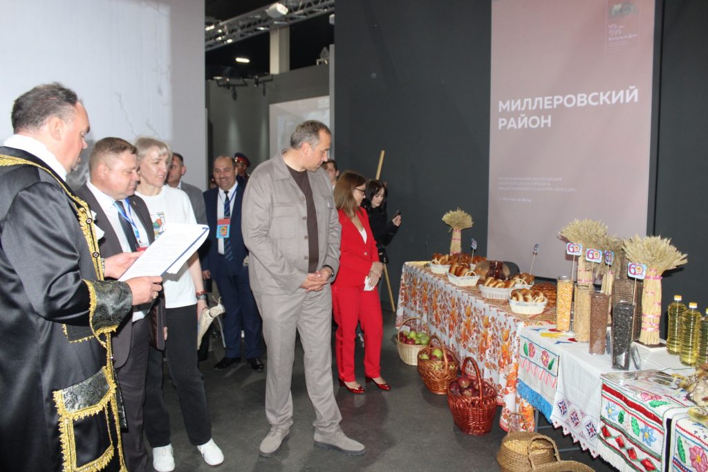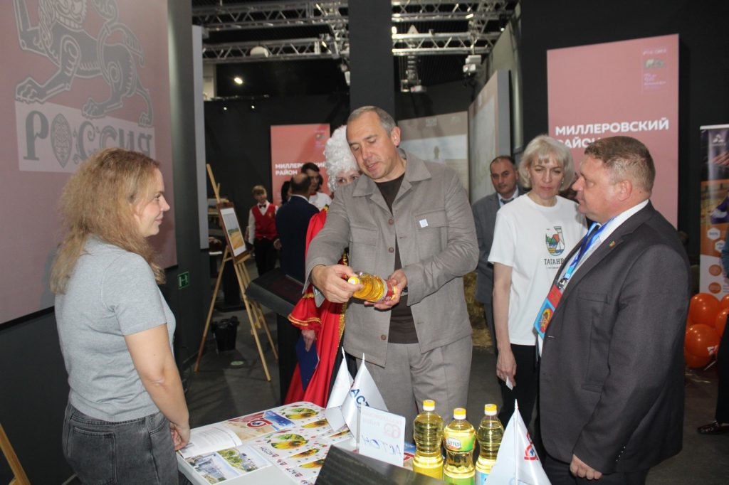 Министр посетил экспозицию нашего района, осмотрел тематические разделы выставки, ознакомился с достижениями миллеровцев.