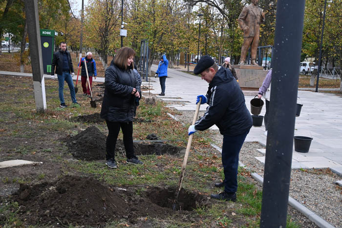 Большую работу проделали сотрудники МКУ «Проектный офис муниципального образования «Миллеровский район» под руководством Юрия Артемова. Коллектив высадил 10 остролистных кленов на аллее у памятника М. А. Шолохову и 40 кленов в сквере Почетных жителей Миллеровского района, расположенном в городке им. маршала Ефимова.