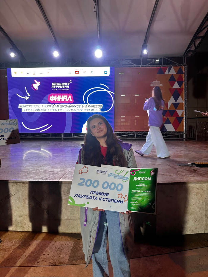 Яна Гавриш — в третий раз участвует в конкурсе, дойти до финала посчастливилось впервые в нынешнем 2025 году. Выполняя кейсовые задания «Большой перемены», наша юная землячка, на тот момент учившаяся в 10-м классе, разработала сценарий театрализованной постановки по повести Бориса Васильева «А зори здесь тихие…», убедительно раскрыла важную роль советских женщин, наравне с мужчинами сражавшихся за Родину в годы Великой Отечественной войны, и в итоге завоевала звание лауреата II степени.