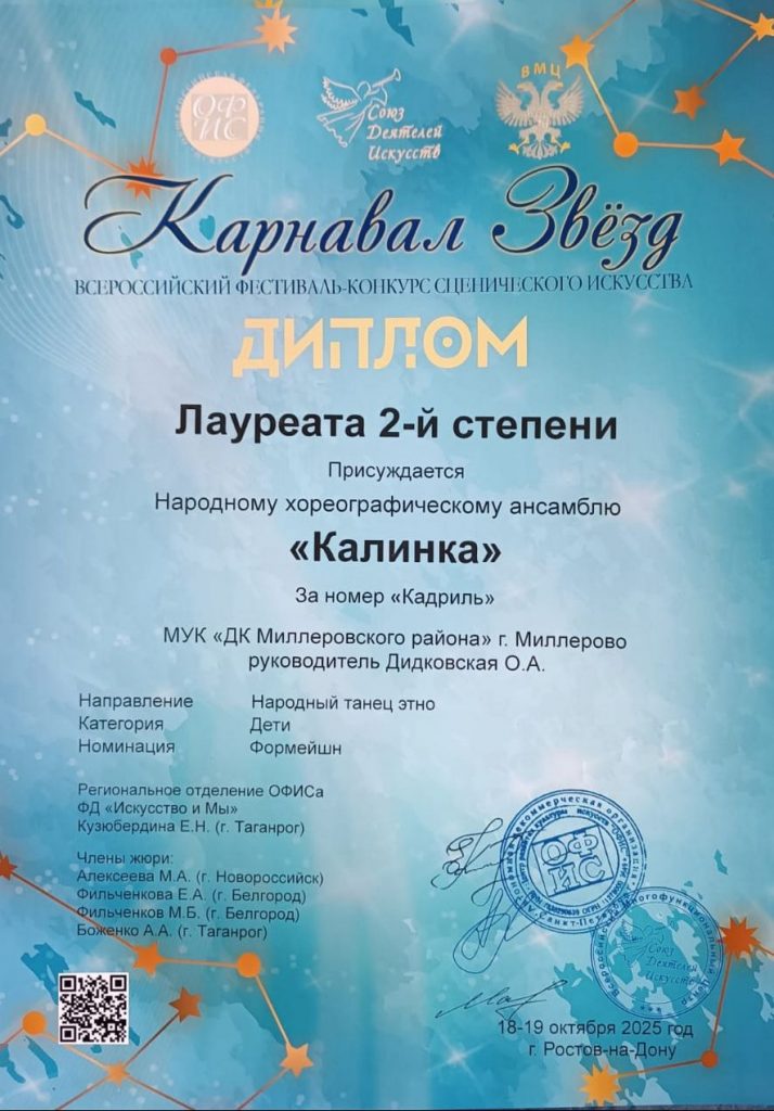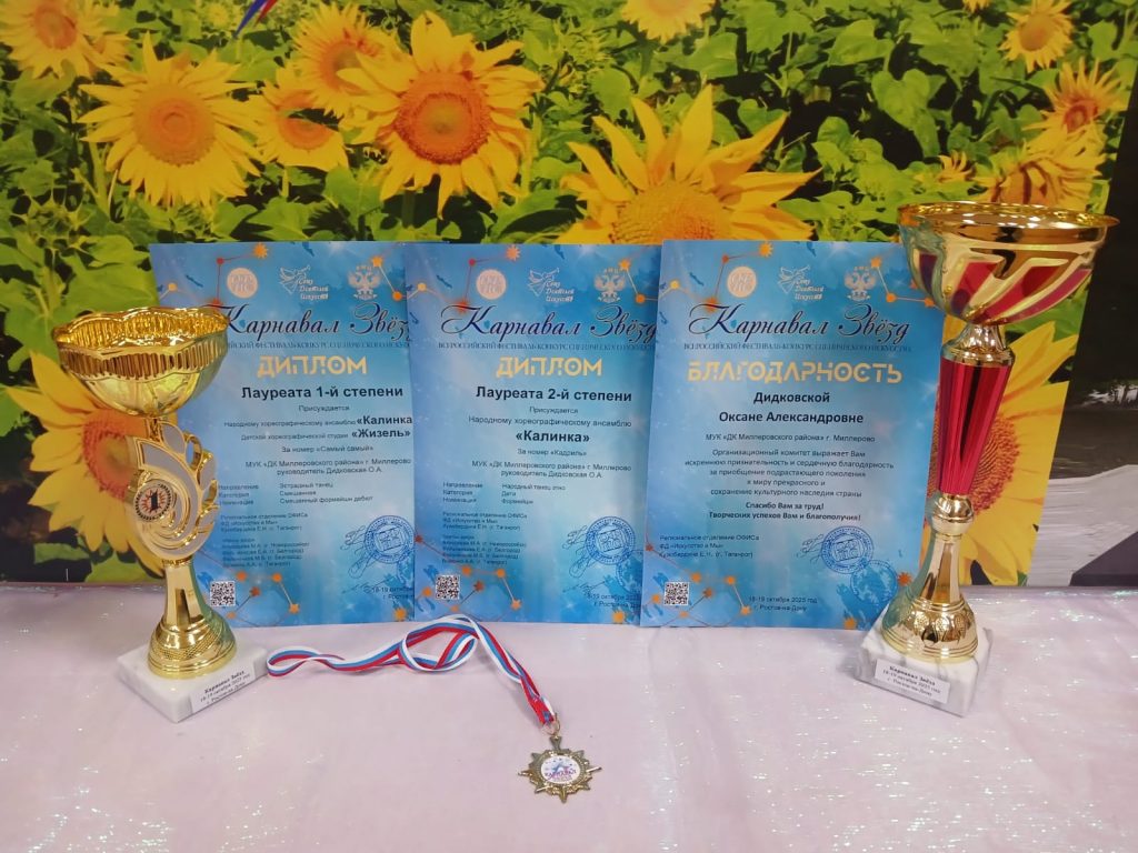 18-19 октября в г. Ростове-на -Дону в ДК Лендворец прошёл Всероссийский фестиваль-конкурс сценического искусства «Карнавал звезд», в котором приняли участие народный хореографический ансамбль «Калинка» и детская хореографическая студия «Жизель» под руководством Дидковской Оксаны Александровны.