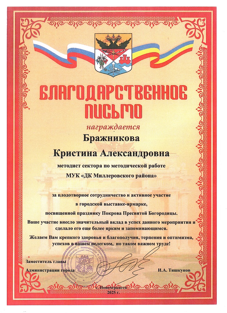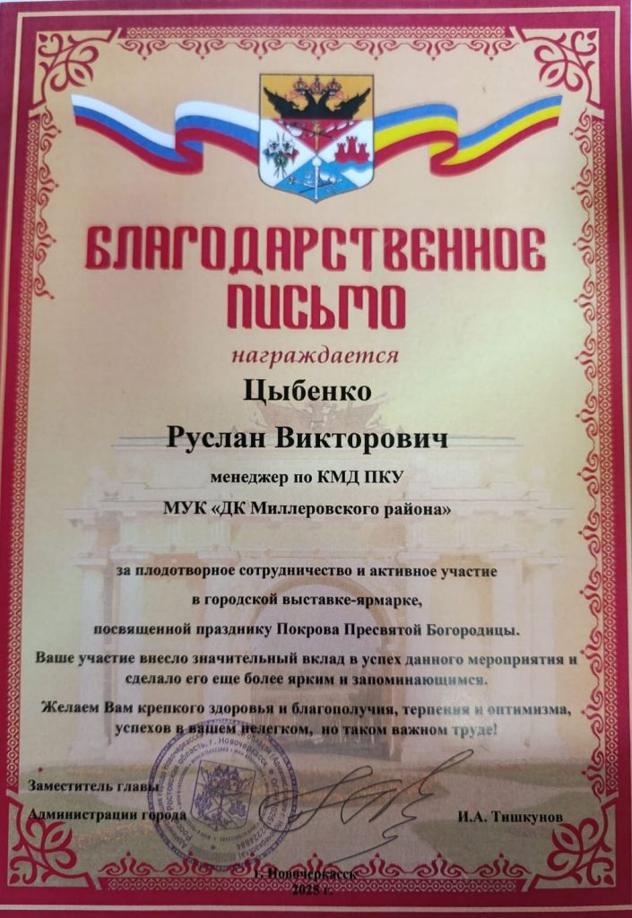 Р.В.Цыбенко, Менеджер ДК Миллеровского района
