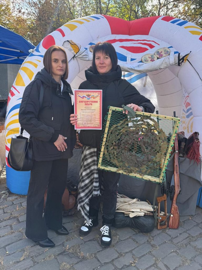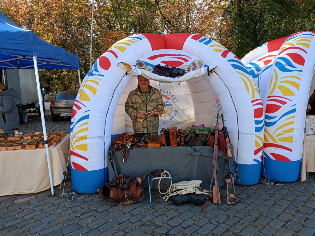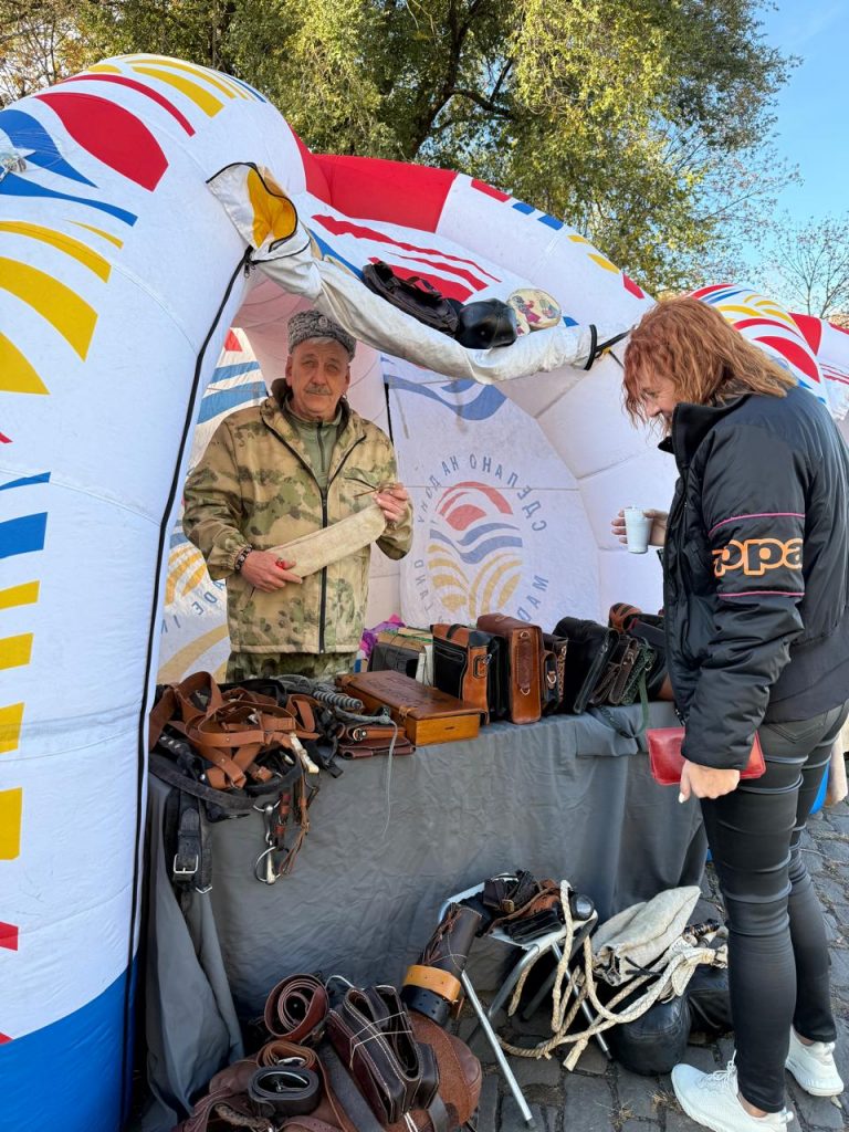 Миллеровский район со своей выставкой изделий из кожи и мастер-классом по плетению маскировочных нашлемников для СВО и браслетов выживания из паракорда представили специалисты районного Дома культуры, мастер ДПИ Руслан Викторович Цыбенко и методист Кристина Александровна Бражникова.