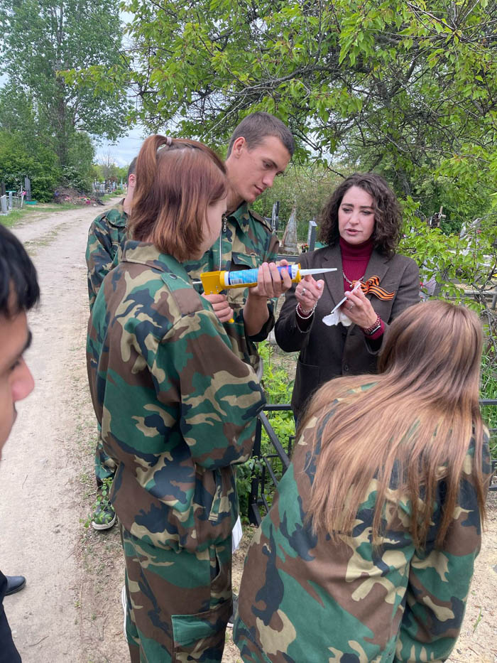 В преддверии 80-летия Великой Победы, в рамках военно-патриотического воспитания молодежи совместными усилиями отдела культуры, молодежной политики и спорта Миллеровского района, администрации Миллеровского городского поселения, Управления образования Миллеровского района, коммунального управления «Благоустройство», волонтерами и студентами Миллеровского техникума агропромышленных технологий и управления (ДСХТ), казачьего кадетского профессионального техникума, РГЭУ (РИНХ) в г. Миллерово были наклеены порядка 700 памятных знаков участников ВОВ на надгробия ветеранов, захороненных на кладбище г. Миллерово.