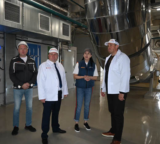 Сегодня его мощности позволяют перерабатывать до 270 тысяч тонн зерна в год, а в первом полугодии текущего года отгружено продукции на 5,1 млрд рублей. Сейчас здесь реализуется инвестиционный проект по увеличению мощности до 500 тысяч тонн в год. Вместе с генеральным директором компании С. Л. Болдыревым обсудили ход третьего этапа проекта, предусматривающего запуск производства импортозамещающих продуктов – глюкозных и фруктозных сиропов, пищевых крахмалов.