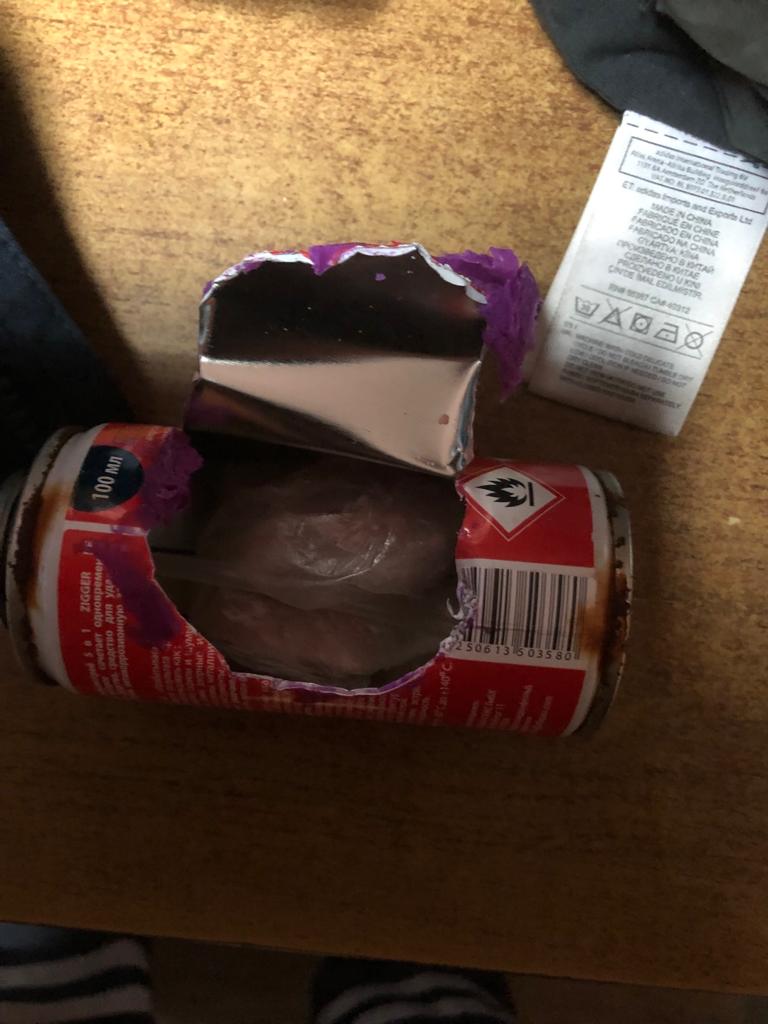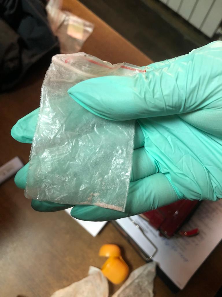 При личном досмотре и досмотре личных вещей гражданина «С» 1998 года рождения в правом кармане куртки под подкладкой был обнаружен металлический баллончик красного цвета с надписью «Скорая помощь» который имел повреждения боковой части в виде отверстия, которое было замазано пластилином, при открытии которого, внутри был обнаружен сверток полиэтиленового пакета с веществом розового цвета. Также при досмотре гражданки «М» 1991 года рождения в поясе штанов был обнаружен пластмассовый футляр от «Киндер Сюрприз» в котором был обнаружен сверток полиэтиленового пакета с веществом розового цвета.