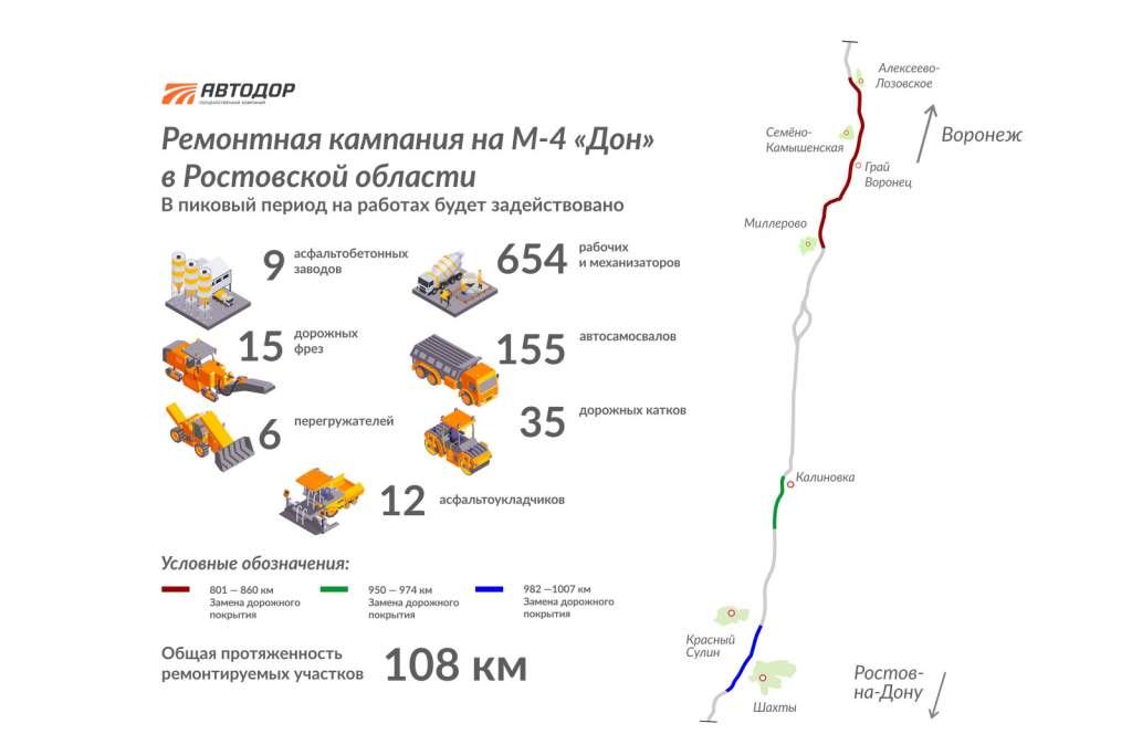 На федеральной трассе М-4 «Дон» из-за проведения ремонтных работ на ряде участков введена временная схема организации дорожного движения. Об этом сообщается на сайте донского правительства.