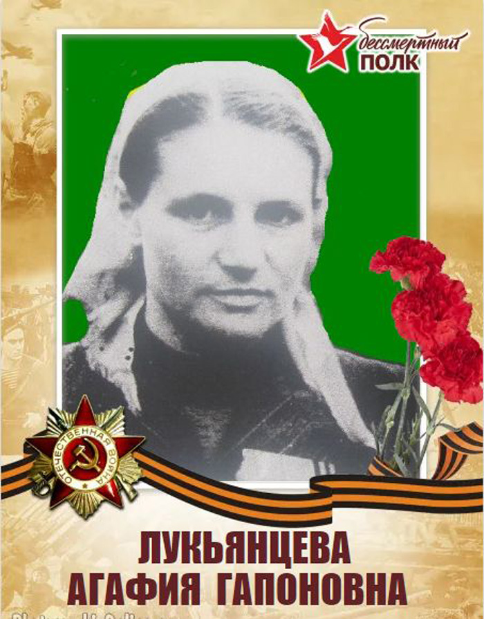 Агафья Гапоновна Лукьянцева, тогда еще Овчаренко, родилась в 1924 году в Туриловке. Училась в школе, была девушкой активной. Когда ей исполнилось 14 лет, вступила в комсомол. На момент начала Великой Отечественной ей исполнилось 17 лет. Вместе с односельчанами работала в колхозе. А в мае 1943-го ушла добровольцем на фронт.