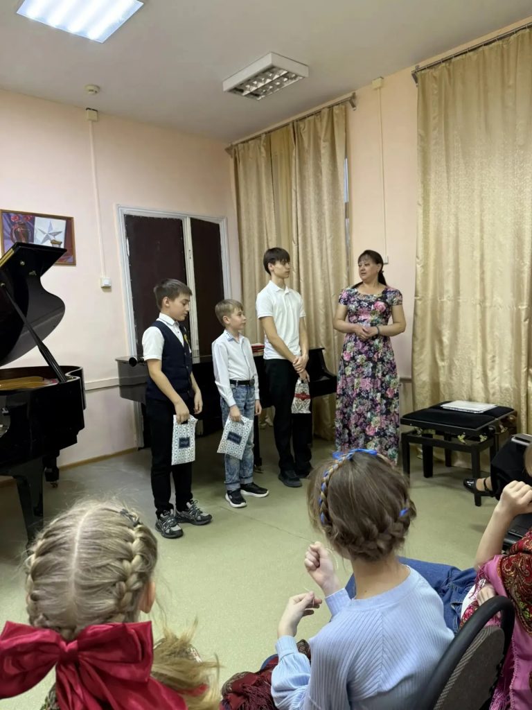 Преподаватель Ирина Петровна Пономарева традиционно проводит совместные встречи, чтобы родители имели возможность увидеть достижения своих детей. Так зародилась целая музыкальная семья.