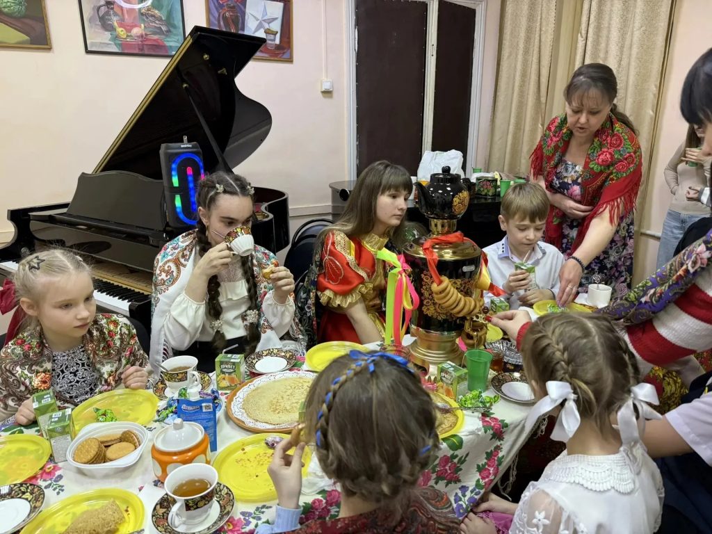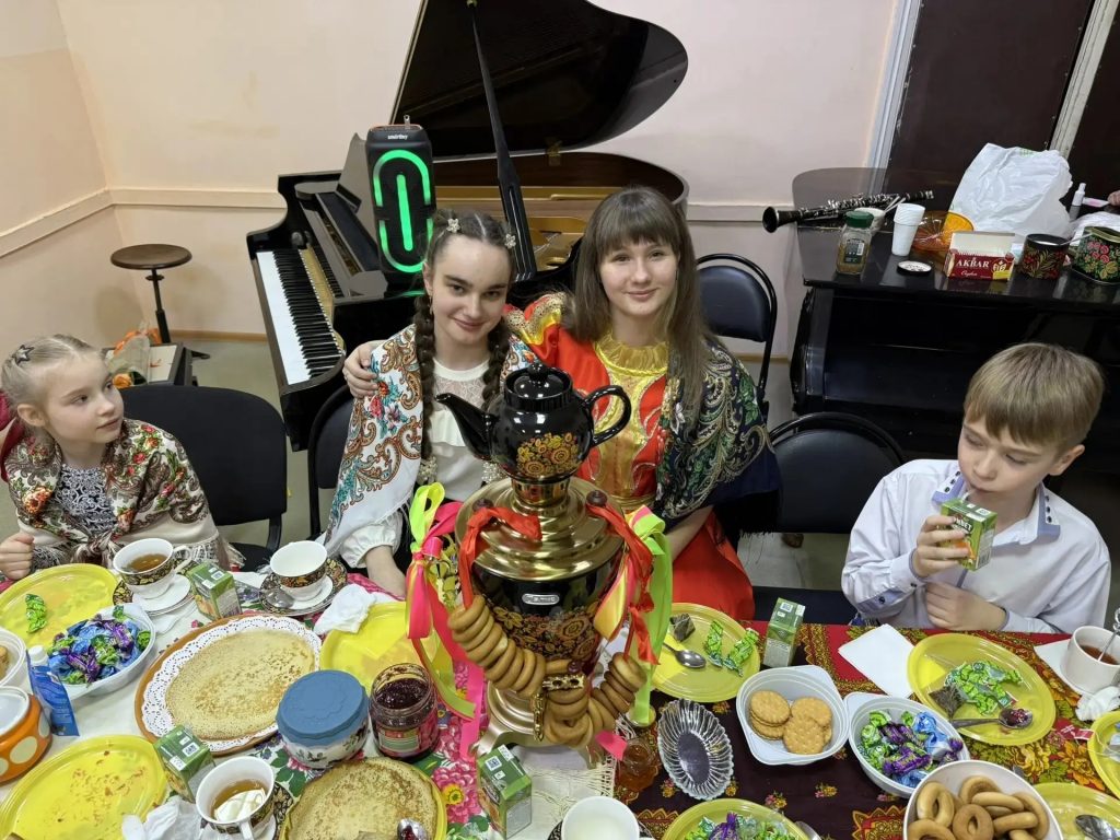 Проникновенные мелодии великих композиторов, исполненные на рояле, сменились веселыми русскими песнями и дружным хороводом. Вкусные блинчики с медом и горячий чай с душистым чабрецом из самовара создали настроение праздника.