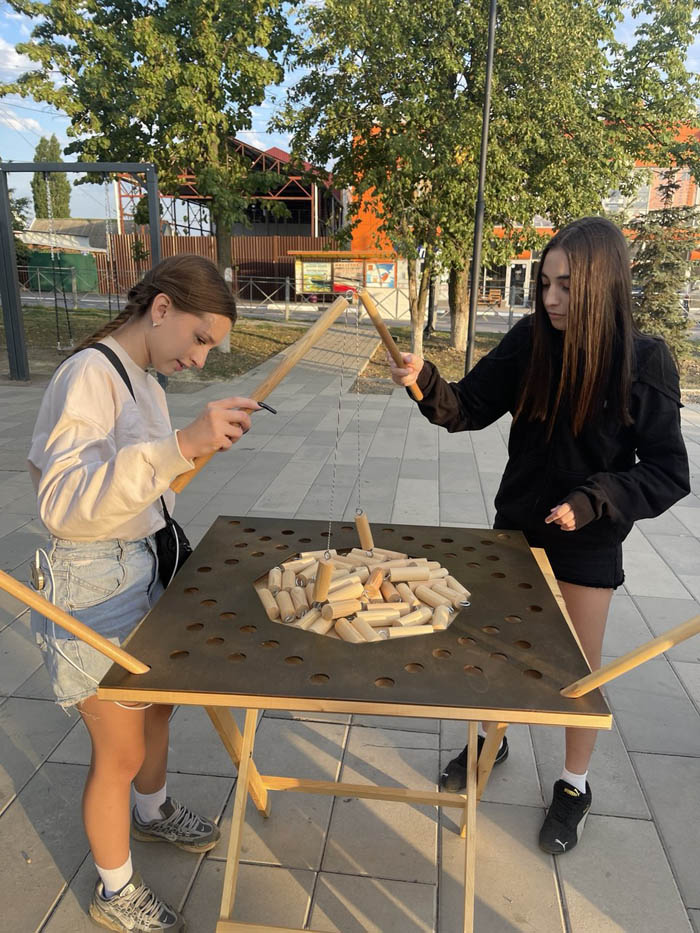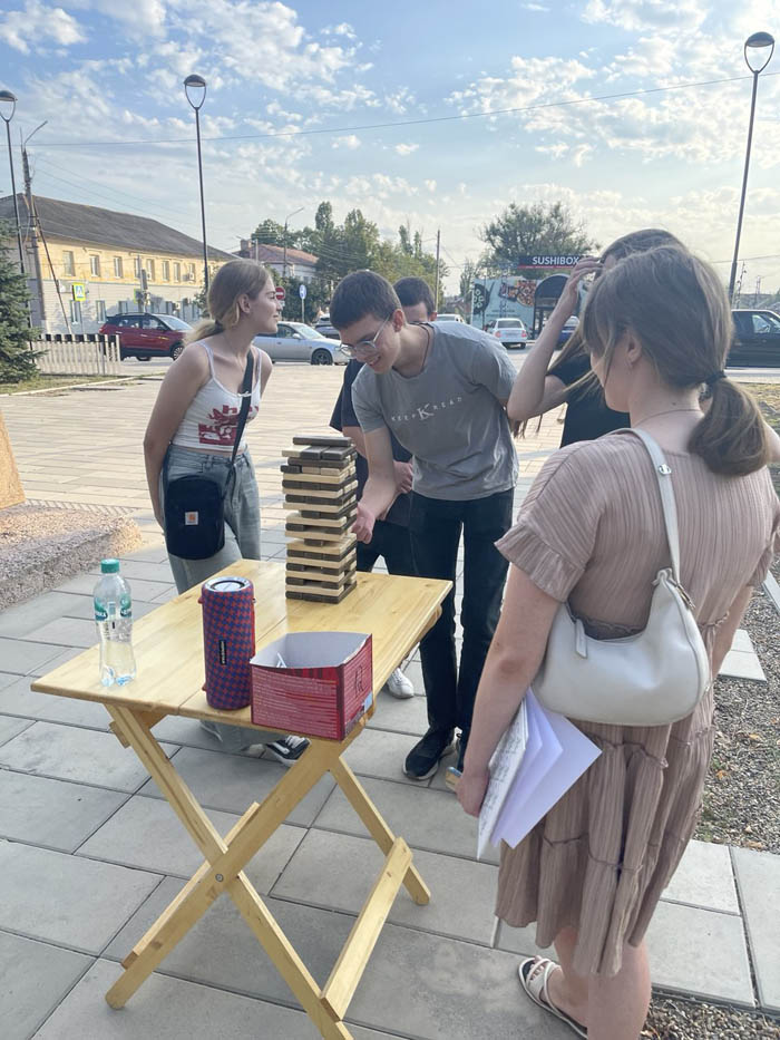 В минувшую субботу на аллее по улице 3-го Интернационала прогуливающие в вечернее время прохожие разных возрастов участвовали в играх: «Рыбалка», «Дженга» и «Камушки». В подарок — сладкий приз.