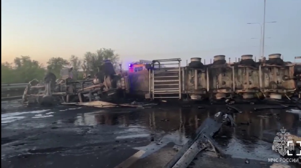 Грузовик «Мерседес-Актрос» с цистерной, перевозивший битум, опрокинулся и выехал на встречную полосу, столкнувшись с «Пежо-Боксер», «Фольксваген-Пассат» и «Лада-Веста». Разлившийся битум загорелся, огонь охватил все четыре автомобиля.