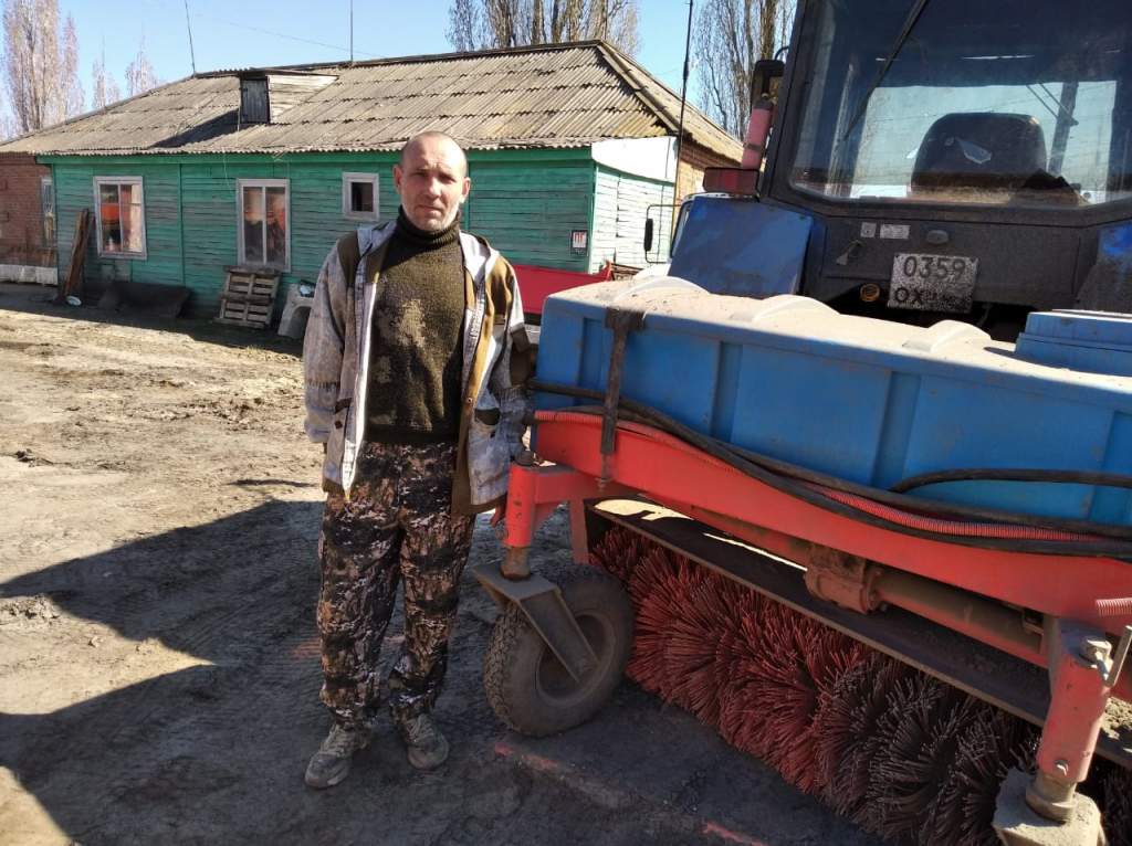 В очистке проезжей части задействовано две единицы техники. Днем на тракторе «Беларус» с навесным оборудованием – щеткой – улицы метет Сергей Николаевич Осадчий.