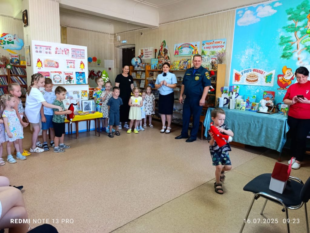 На мероприятие пришли маленькие гости — ребята из детский сад №1 с воспитателем Е.А.Гусаковой. Целью встречи было посеять зерна знаний в благодатную почву детской любознательности, чтобы вырастить людей с активной гражданской позицией, соблюдающих пожарное законодательство, среди которых возможно будущие пожарные, спасатели, добровольцы.