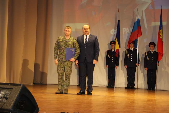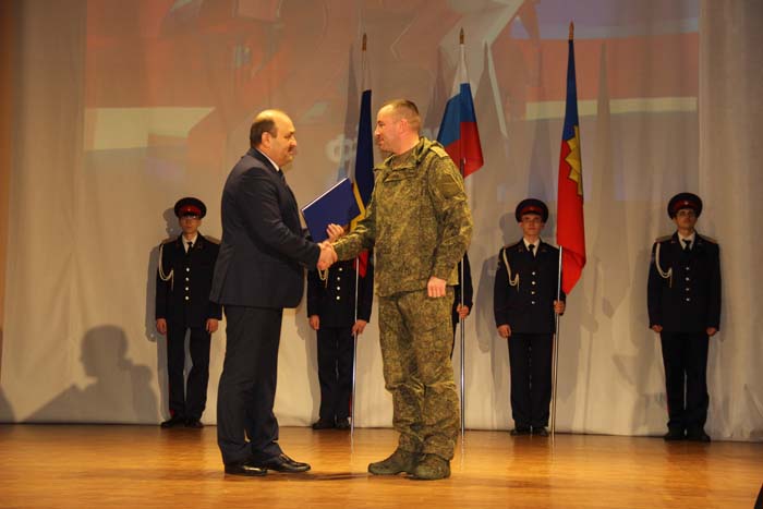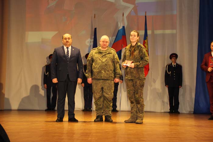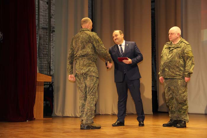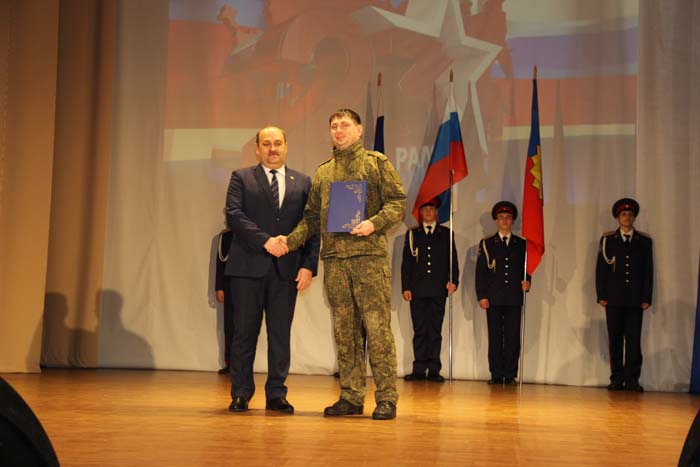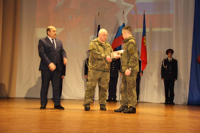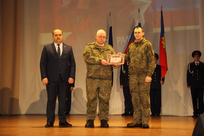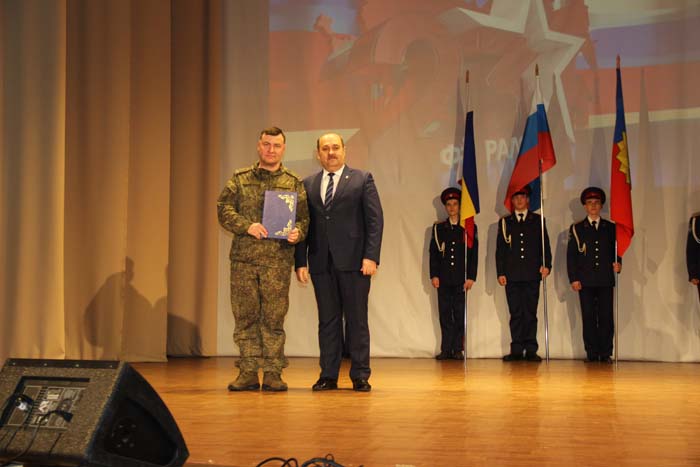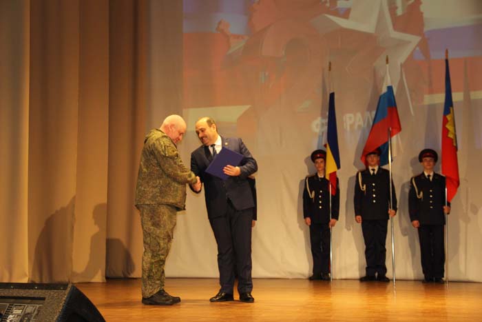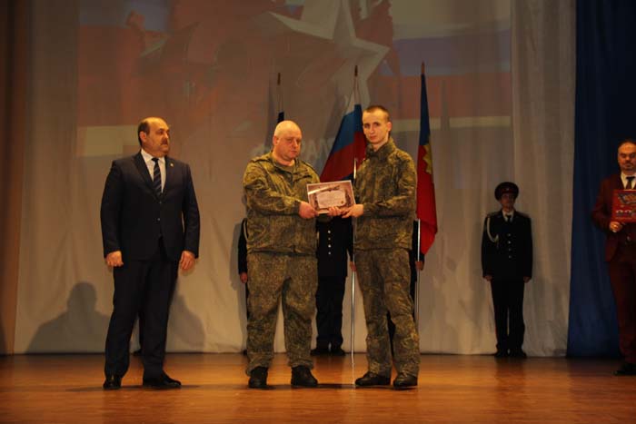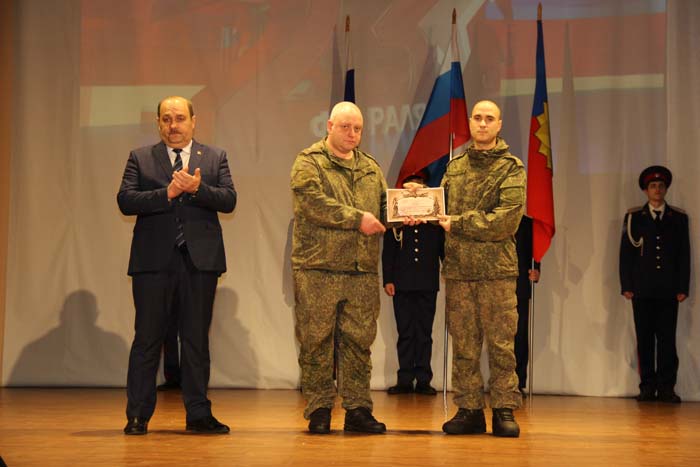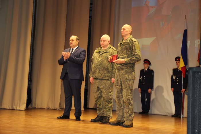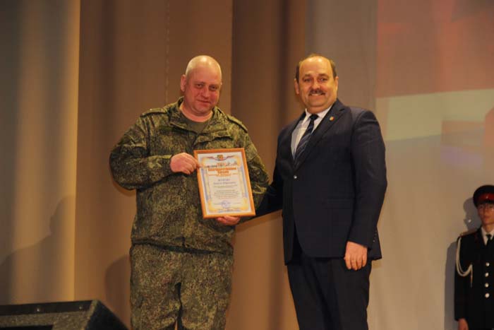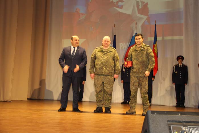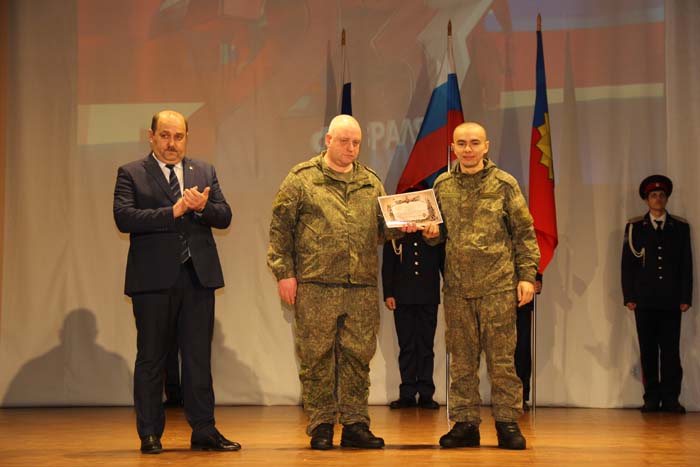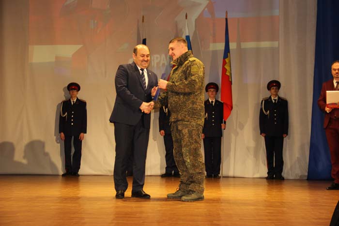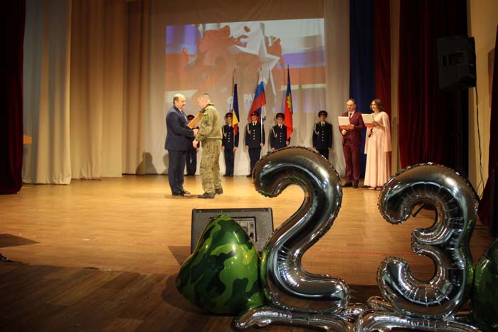 – Этот день является символом отваги и чести всех поколений российских воинов, олицетворяя доблесть и славу вооруженных сил нашего государства, – обратился Михаил Гуснай к собравшимся в зале. — Это выдающаяся дата для всех мужчин и женщин, кто имел и имеет честь носить погоны и военную форму. Особые слова признательности и благодарности выражаем нашим военнослужащим, которые с оружием в руках защищают интересы отечества в зоне проведения СВО. Причем защищают не просто территории, а прежде всего людей, которые являются нашими соотечественниками. Отдельные слова благодарности родным наших воинов, волонтерам и всем неравнодушным жителям, кто здесь в тылу неустанно поддерживает наших защитников. В этом единении, всенародной поддержке военнослужащих великая сила России и твердая непокобимая убежденность в том, что победа будет за нами!