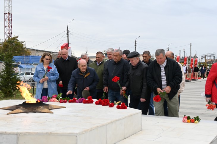 Знакомство ветеранов с историей началось с торжественного возложения цветов к мемориалу «Вечный огонь».
