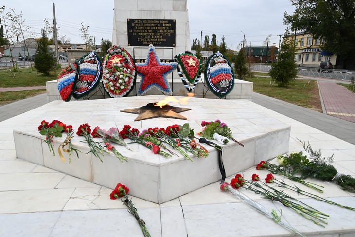 Мемориал воинской славы с Вечным огнем, где прошел митинг, был открыт в год 30-летия Победы. 9 мая 1975 года на постаменте у подножия стелы зажгли Вечный огонь, который с тех пор не угасает уже полвека.