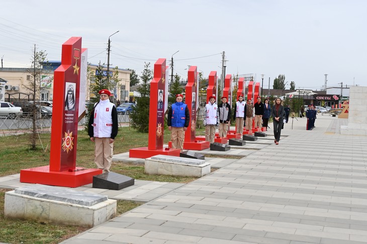 Прибывшие в наш город ветераны, участники зонального совещания, рассмотрели стелы с изображениями Героев, поделились впечатлениями и своими воспоминаниями. Почтили память погибших минутой молчания и возложением цветов.