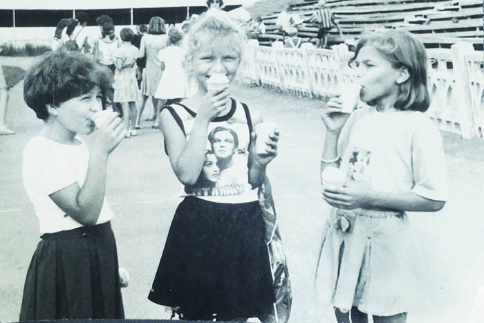 Юля Сопяник, Аня Бочарова, Оля Патюкова. ОбществоНа одной из фотографий, которые в этот раз выбрали, три счастливые девочки с мороженым в руках на городском стадионе. Снимок был сделан нашим фотографом Александром Сергеевичем Егоровым, настоящим профессионалом своего дела, который отдал работе в «Нашем крае» несколько десятков лет.
