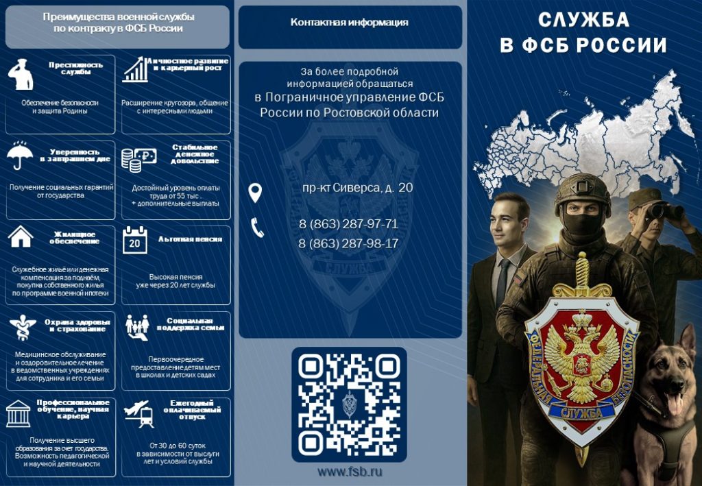 Пограничным управлением ФСБ России по Ростовской области проводится отбор кандидатов для прохождения военной службы по контракту в органах безопасности Российской Федерации.