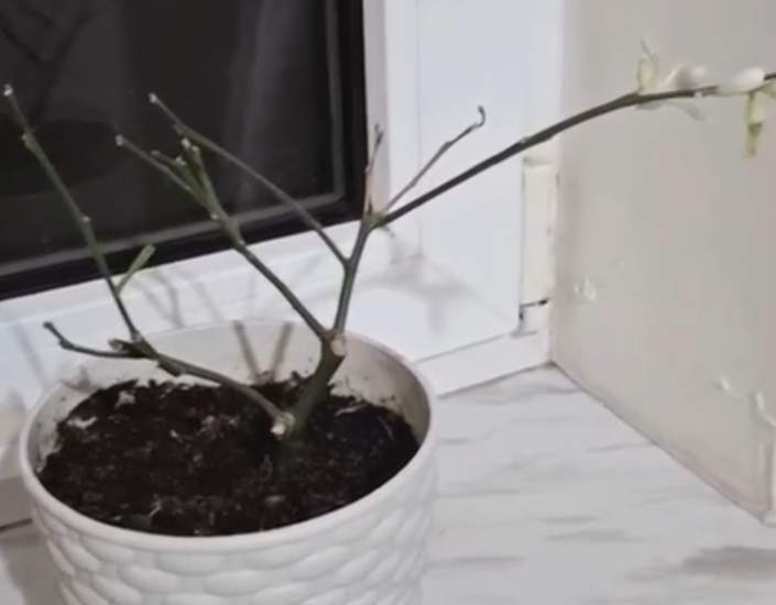 Анна рассказала, что её мандариновое дерево за три года почти не увеличилось в размерах, несмотря на то что иногда на ветках появляются листья, которые быстро опадают. При этом растение продолжает красиво цвести.