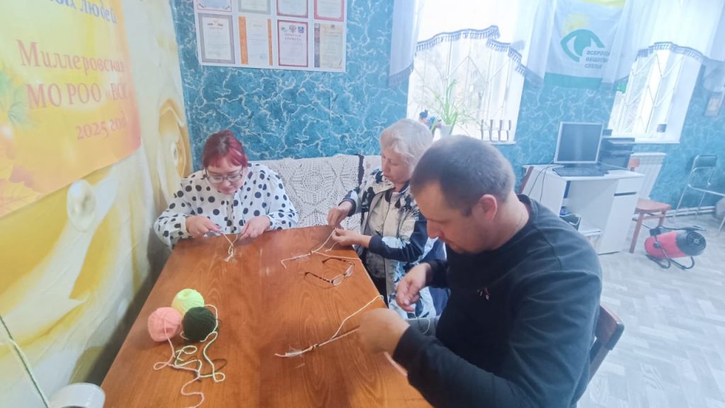 10 октября, в кабинете реабилитации Миллеровской МО РОО ВОС Любовь Сергеевна Дмитриченко провела для людей с ограниченными возможностями здоровья мастер — класс по плетению браслетов из нитей.