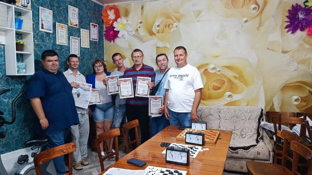 По результатам состязаний в шашки третье место занял Александр Скоторенко, вторым стал Сергей Остапущенко и победитель — Владимир Емельяненко.