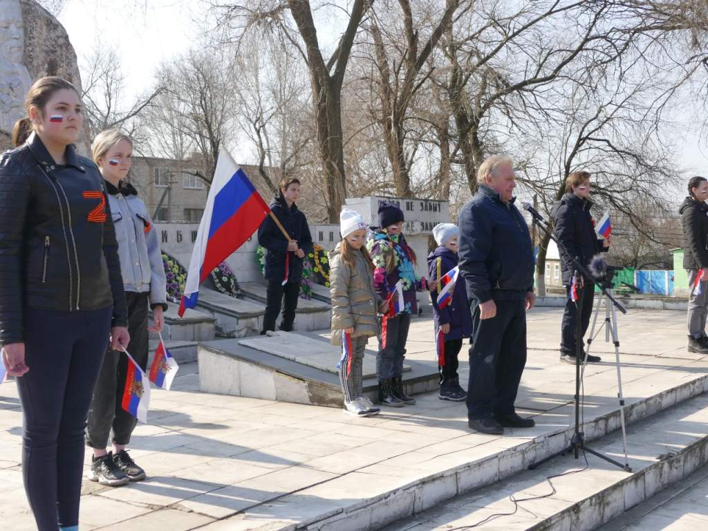 На площади выстроились активисты Волошинской школы с георгиевскими ленточками буквой «Z», российскими флагами. Школьники исполнили флешмоб-песню «Поднимайся, Россия», им подпевали люди, которые пришли с семьями в поддержку акции. Ученица 10 класса Анастасия Слугинова и работник ДК Юлия Морозова спели песню «За нами Донбасс».