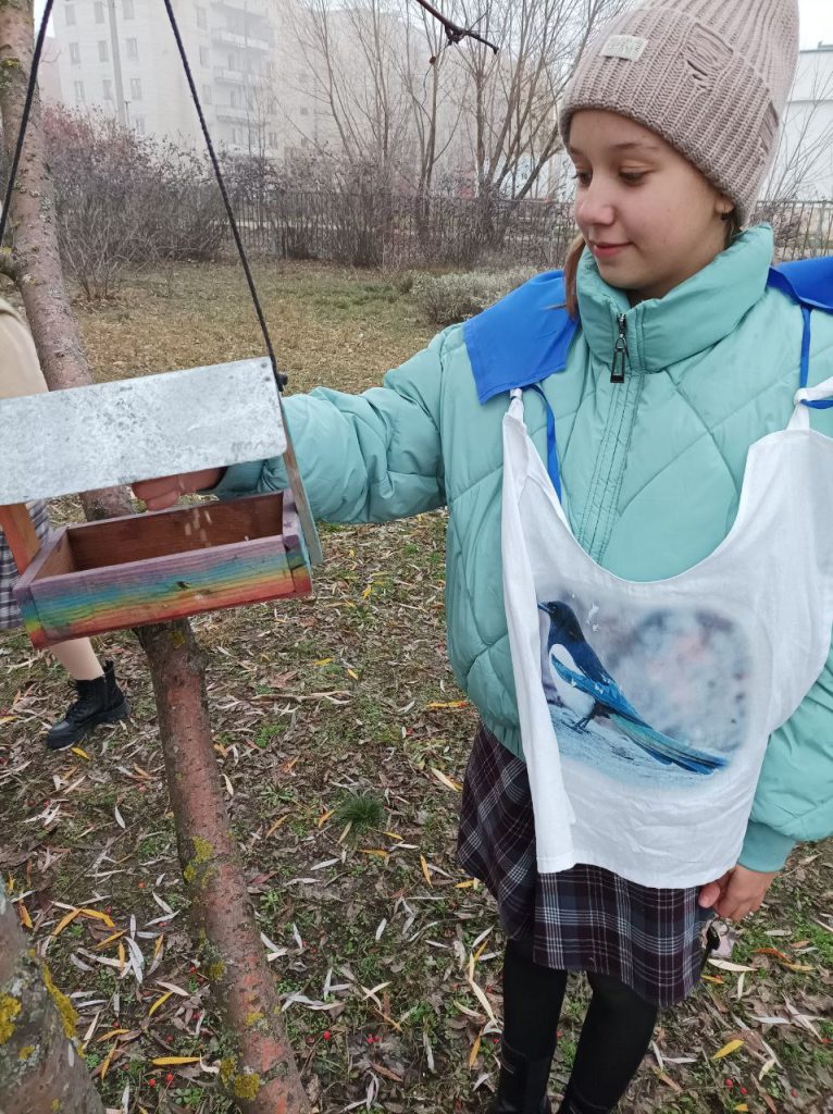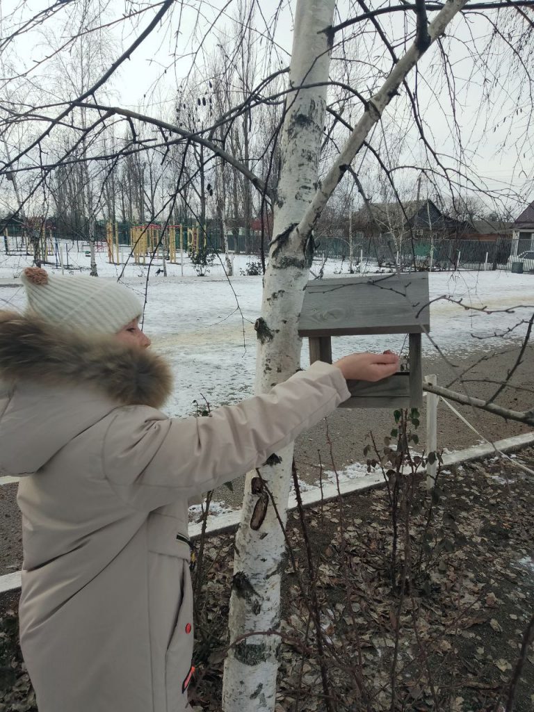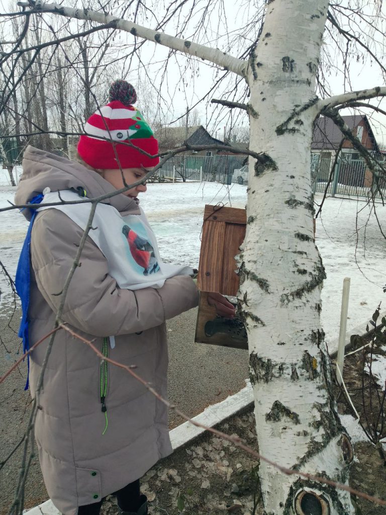 Педагог вместе с юными натуралистами воспитанниками ЭБЦ и учащимися школы №4 занимаются регулярной подкормкой и наблюдением за зимующими птицами.