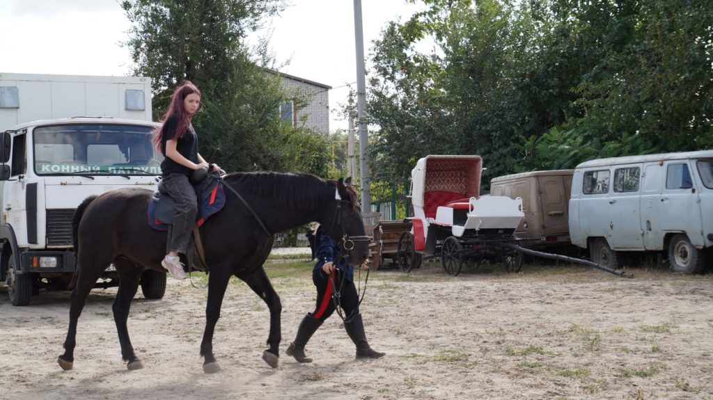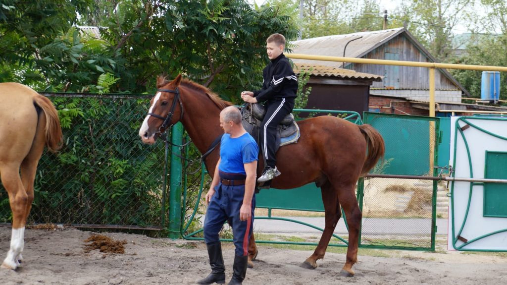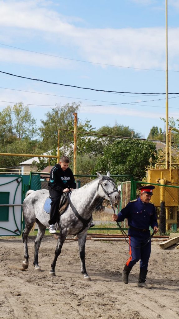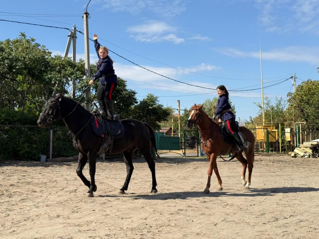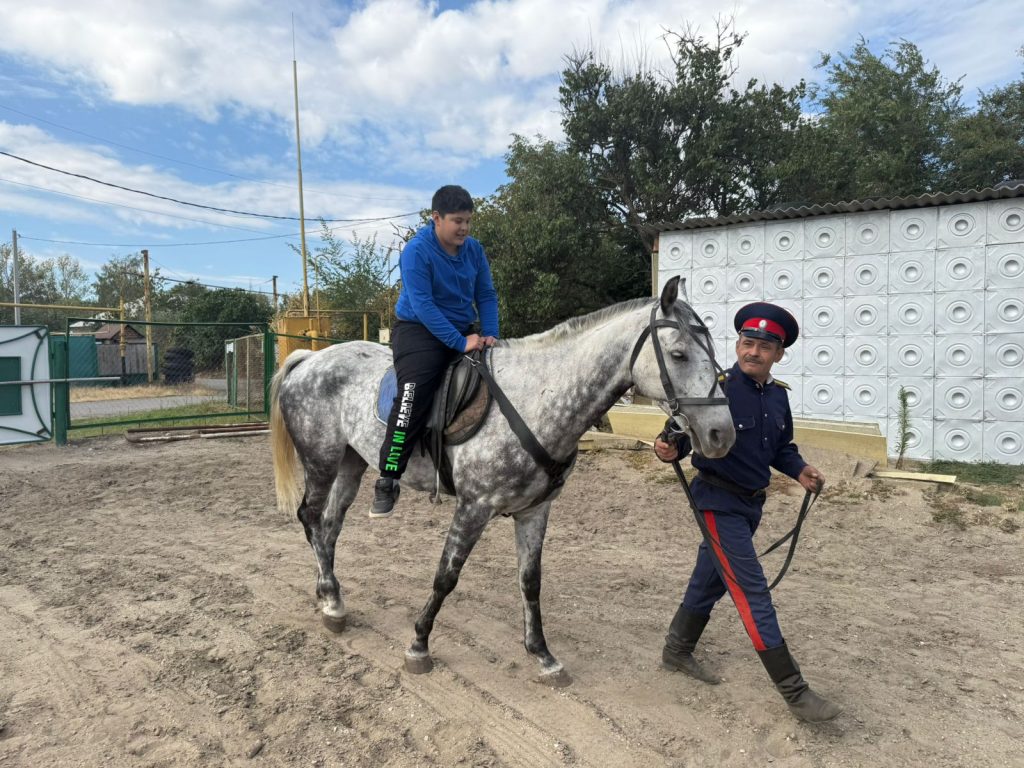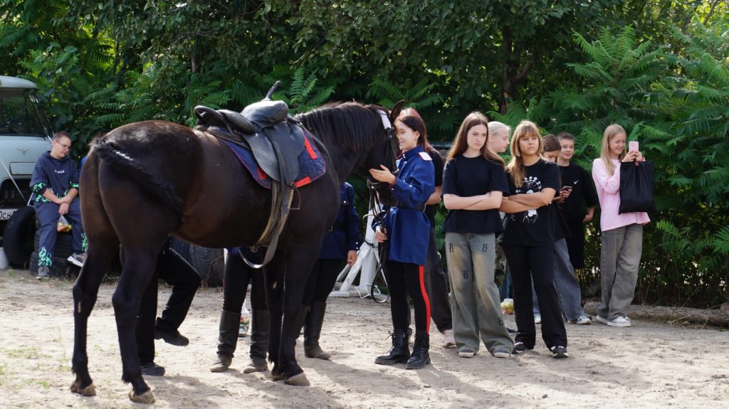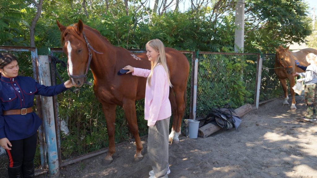 Также юные участники Дня открытых дверей самостоятельно почистили казачьих коней, подседлали их и сели в седло.