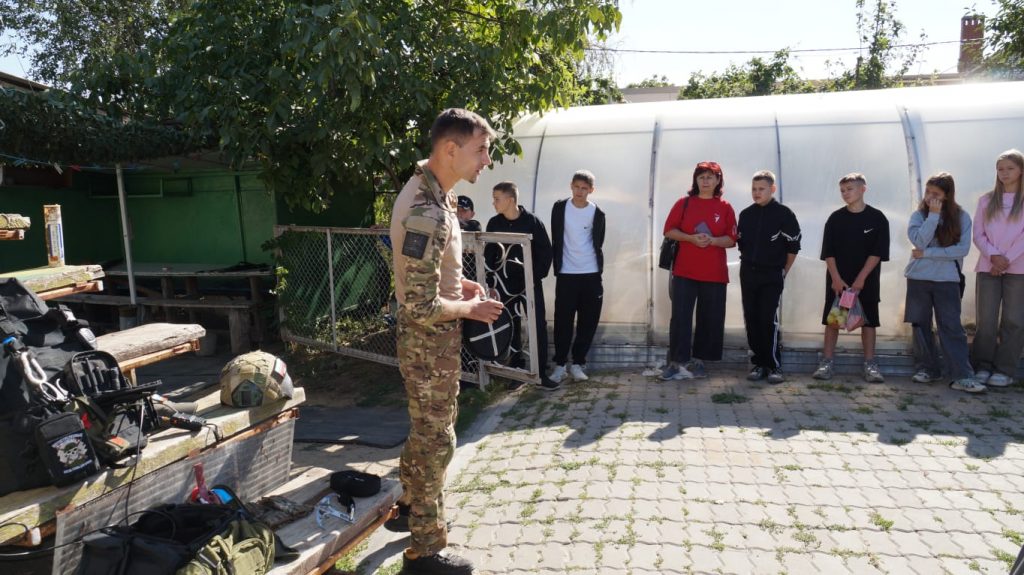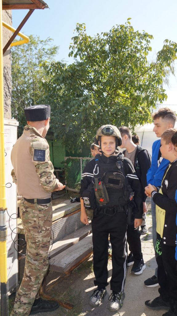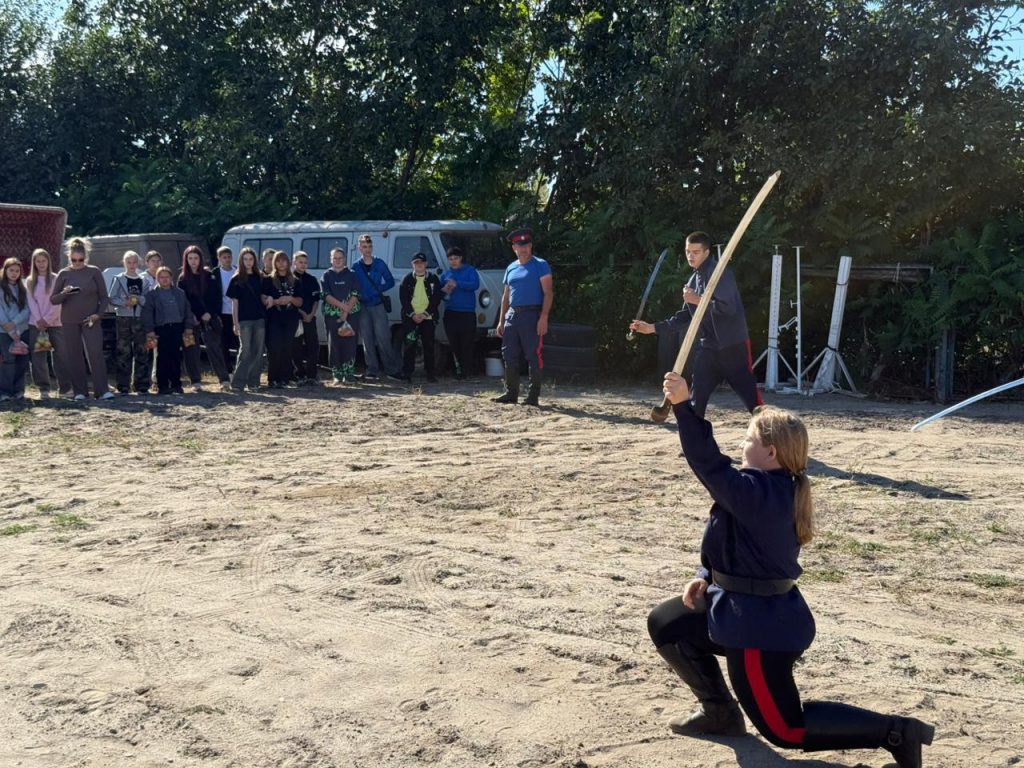 Затем для учащихся провёл показательный урок участник СВО, наш земляк ветеран боевых действий Иван Николаевич Ткачук. Он показал, как пользоваться бронежилетами, касками «Булатом», медицинским оборудованием. Казаки конники, участники молодёжной казачьей организации «Донцы», волонтёры станицы Миллеровской показали лицеистам владения казачьей шашкой — фланкировку и элементы джигитовки.