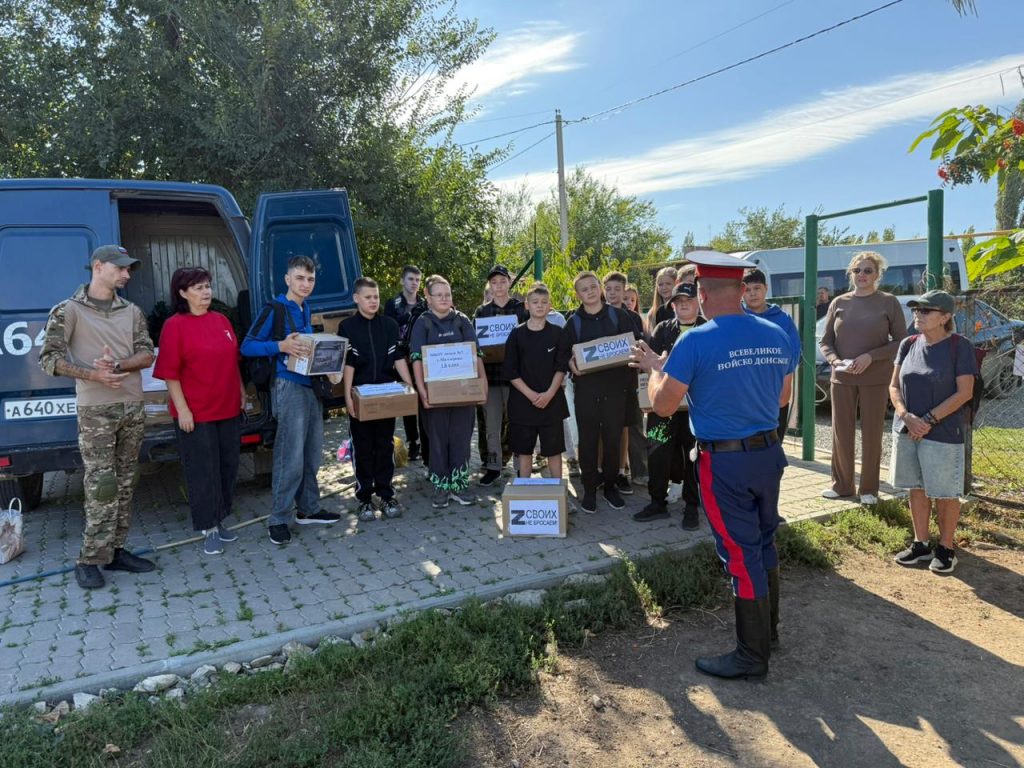 Взвод посетили учащиеся лицея № 7. Они передали собранную учащимися и сотрудниками лицея гуманитарную помощь для бойцов СВО, которую в ближайшее время казаки под руководством атамана округа казачьего полковника Алексея Николаевича Седакова доставят на передний край нашим бойцам.
