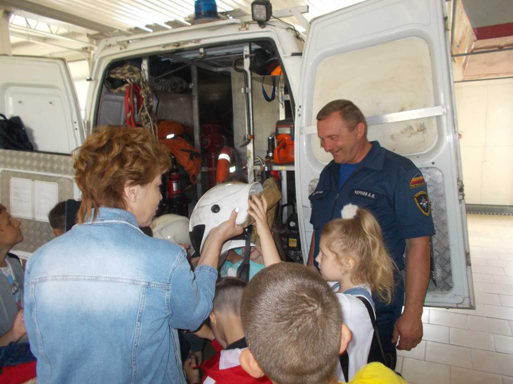 Дети в летнее время находятся в пришкольных лагерях под присмотром учителей. С ними проводятся регулярные профилактические беседы. Сегодня малыши пришли в гости к спасателям. Их встретила дежурная смена и начальник отряда Андрей Петрович Чернов.