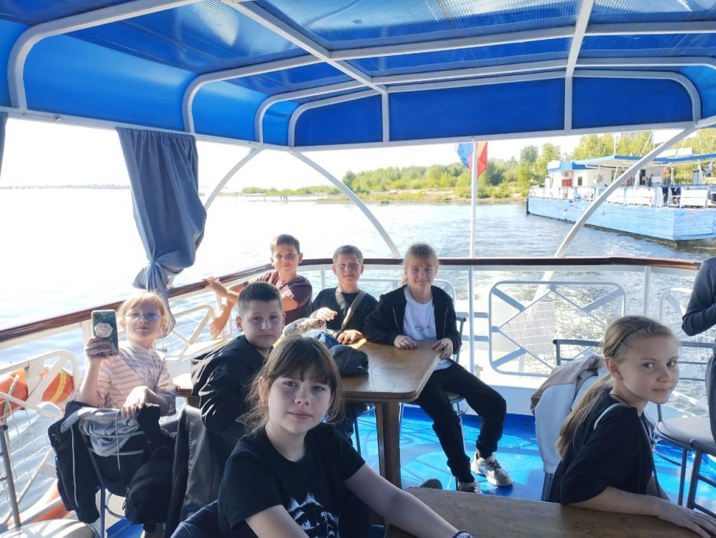 Завершилась экскурсия увлекательной прогулкой на теплоходе по Волге. С воды открывались потрясающие виды на город, его современные и исторические достопримечательности. Семьи наслаждались живописными пейзажами, обсуждали увиденное и делали памятные фотографии.