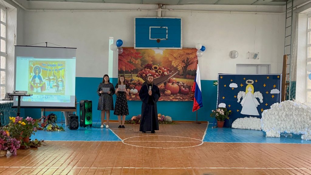 В этот день школу посетил уважаемый гость — настоятель храма Успения Пресвятой Богородицы станицы Мальчевской иерей Владимир Молородов. Священник поздравил всех присутствующих с праздником и напомнил о значении Покрова Пресвятой Богородицы в жизни каждого верующего. Благодаря рассказу отца Владимира участники праздника смогли лучше понять важность любви и заботы, которые олицетворяет Божия Мать.